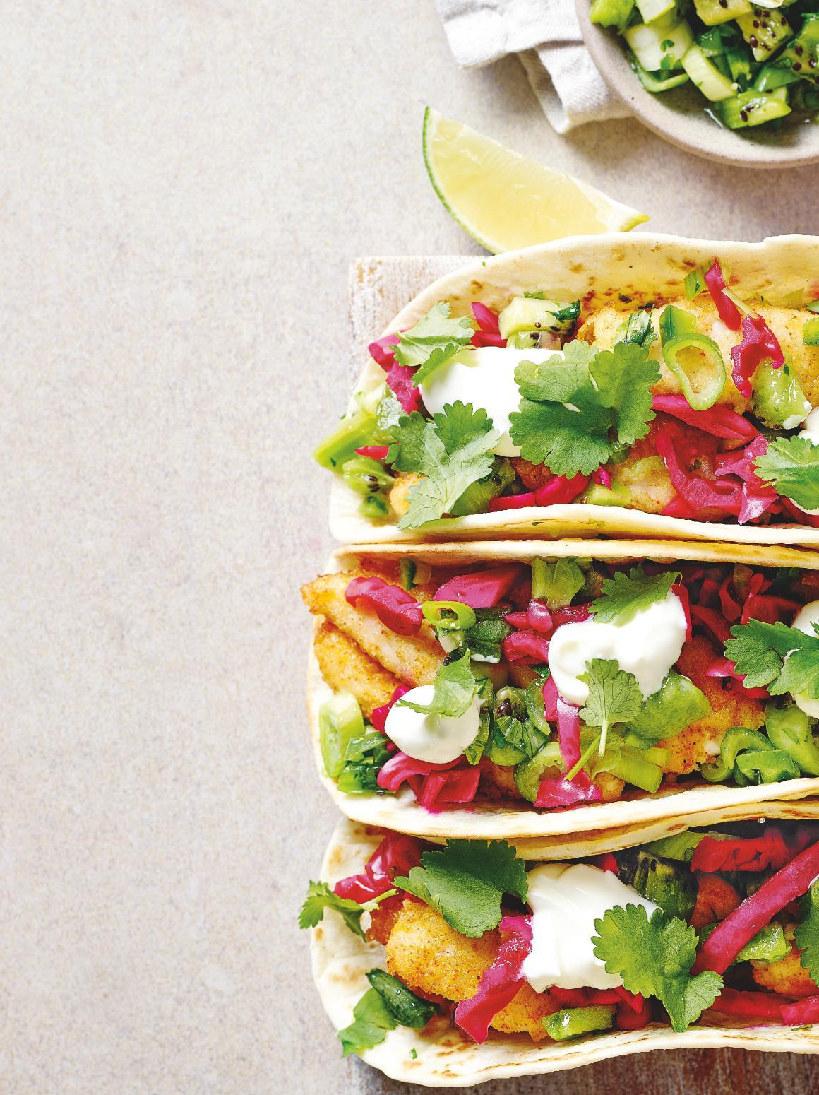 Spice up your Friday night with these fragrant fish tacos and zesty kiwi salsa