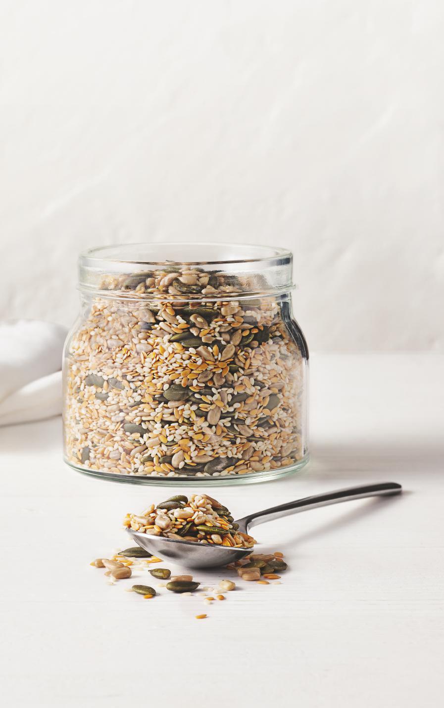 As seeds are high in fibre, add them to your diet gradually to avoid bloating. Start by sprinkling over porridge, using to add texture to stir-fries or creating a seedy crumb for fish before baking.