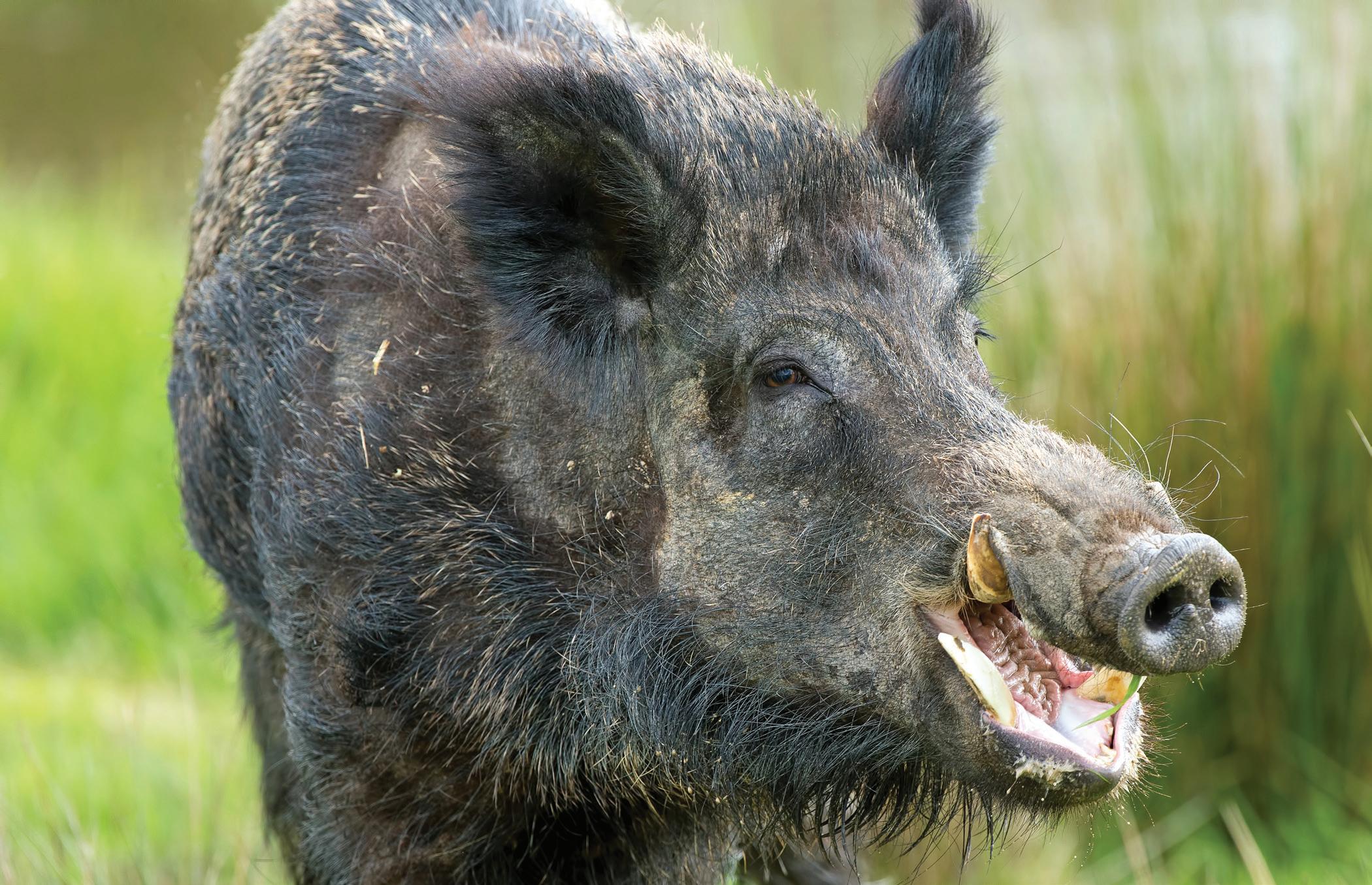 “ e hogs. Here’s what I’ll do. See that rise? I’ll walk around the le side. e hogs in there will smell me like the last time, and when they come running out, you can get a few shots. en, I’ll get the ones that are farther away with my ri e.”