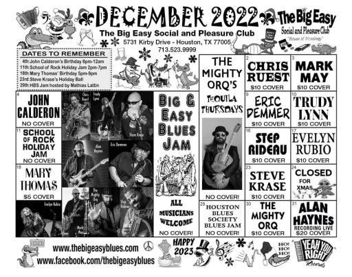 Hi Folks, Hello Music News readers. I hope everybody had a great November. If you look carefully at the cover of this issue, you can see that we have now started our 41st year of production. That’s right, as of this issue, we have brought you four solid decades of Music News. It’s certainly been a wild ride. We would have never guessed that we would have lasted so long, but we did. We’ve undergone a few changes along the way. We started out in print and utilized that form for 38 years until the pandemic hit. Now we are totally online. When we first went online in 1993, I never thought that it was the wave of the future, but it certainly is. Everything is online right now and unfortunately free print magazines seem to be falling by the wayside. We are certainly happy that we were among the first to utilize this new technology and we implore all of you to continue reading Music News at http://www.houstonmusicnews.net. Thanks everybody for you’re support and here’s to another 40 years of Music News aka Houston Music News.