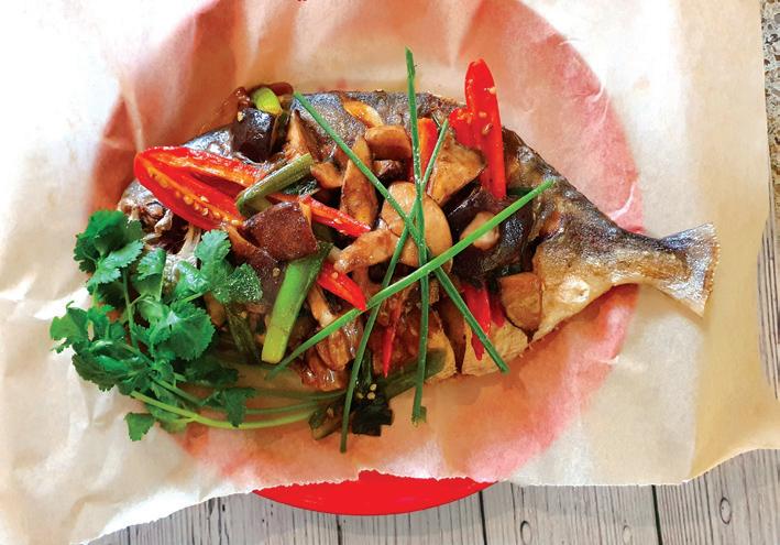 เครองปรุง ปลาจา รั ะเ ม ดี 1 ตัว น� ำห นักป รั ะมาณ 500 กรััม เกล อ 1 ชื่ชื่ พิ่รัิกไ ทุ ยป น 1 ชื่ชื่ เห็ ดีรั วม ( ชื่ิตาเกะส ดี เ ขึ้็ม ทุ อง นาง รั ม) 300 ก รััม ต้นหอมหั น ทุ ่อน 4-5 ต้น พิ่รัิก ชื่ ฟ้าหั นเฉลียง 4 เม็ ดี ก รั ะเ ทุียมสับละเอีย ดี 2 ชื่ ต. ขึ้ิงซอย 2 ชื่ ต. ซอสหอยนาง รั ม 1 ชื่ ต. เหล้าจีน 1 ชื่ ต. ซีอิ ว ขึ้ าว 1 ชื่ ต. นํ�า ตาล ทุรั ายแ ดี ง 1 ชื่ชื่ นํ�ารั ้อน ห รั่ อ นํ�า สต๊อก 1/2 ถึ ้วย แป้ง ขึ้ ้าวโ พิ่ดี 1 ชื่ ต. ละลาย นํ�า นํ�า มัน พิ่่ชื่ 1 ชื่ ต. น� ำ มันสำหรัับ ทุ อ ดี ปลา ( ถึ ้า ทุ อ ดี เค รั่�อง ทุ อ ดี ไ รั น� ำ มัน ก็ไ ม ต ้องใ ชื่ ้) ผัก ชื่ีตกแต่ง วธ่ทา • ล้างปลา บั�งเฉียงกากบาทุทุั�งสองดี้าน ซับให้แห้ง โรัยเกล่อ พิ่รัิกไทุยทุั�งสองดี้าน พิ่ักไว • ตั�งกรัะทุะน�ำมัน ไฟปานกลาง พิ่อน�ำมันรั้อนแล้ว นำปลาลง ทุอดีให้เหล่องกรัอบทุั�งสองดี้าน (ปรัะมาณดี้านละ 5 นาทุี) ถึ้าใชื่้เครั่�องทุอดีไรั น�ำมัน ตั�งอุณหภม ทุี 200 องศา เวลา 20 นาทุ หรั่อจนกรัอบ ตักขึ้้�นพิ่ักไว • ทุำซ้อสน�ำแดีง ตั�งกรัะทุะอีกใบใชื่้ไฟกลางค่อนขึ้้างแรัง ใส น�ำมัน 1 ชื่ต. นำกรัะเทุียมลงผดีให้หอมตามดี้วยเหดีรัวม ขึ้ิงซอย ต้นหอม พิ่รัิกชื่ีฟ้า และเหล้าจีน ปรัุงรัสดี้วย ซอสหอยนางรัม ซอิ�วขึ้าว น�ำตาลทุรัายแดีง เติมน�ำรั้อน ใส่แป้งขึ้้าวโพิ่ดีละลายน�ำ คนอย่าให จับกันเป็นก้อน ผดีให ผักทุุกอย่างสุกอีกปรัะมาณ 1 นาทุ • นำซอสทุี�ไดี รัาดีบนปลาจารัะเมดี โรัยพิ่รัิกไทุย ผักชื่ เสรั์ฟ กับขึ้้าวสวยรั้อนๆ หรั่อ บะหมี�ลวกก็เขึ้้ากัน 28 1 SMILE TASTE POMFRET FISH WITH WILD MUSHROOM SAUCE