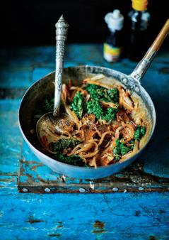 Heat the remaining oil in a large wok over a high heat until it is smoking hot. Add the beef and give the wok a little shake to make sure the beef doesn’t stick to it (the coating of oil on the meat and in the wok should stop it from sticking completely). Stir-fry the beef for about 30 seconds until it is sealed on all sides. Add the chilli jam, shallots and the kale and stir-fry for another minute or so until the vegetables have softened. Lastly add the soaked rice noodles and stir-fry for a minute or two until the noodles are translucent and cooked throughout.