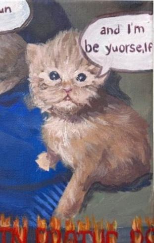Drefahl said she tries to pick out subject matter based on how accessible and comprehensible the meme is for a general audience. One painting of hers that didn’t make the cut depicted a girl dressed as an Oompa Loompa from the Glasgow Willy Wonka experience, which she said she felt was too niche.