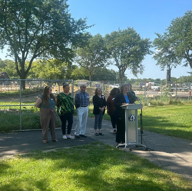 Rhodes-Conway highlighted the importance of libraries as critical infrastructure in her speech, which was delivered at the construction site of the Imagination Center, a partnership project between libraries and parks to build an indoor-outdoor library and community area on Madison’s East Side.