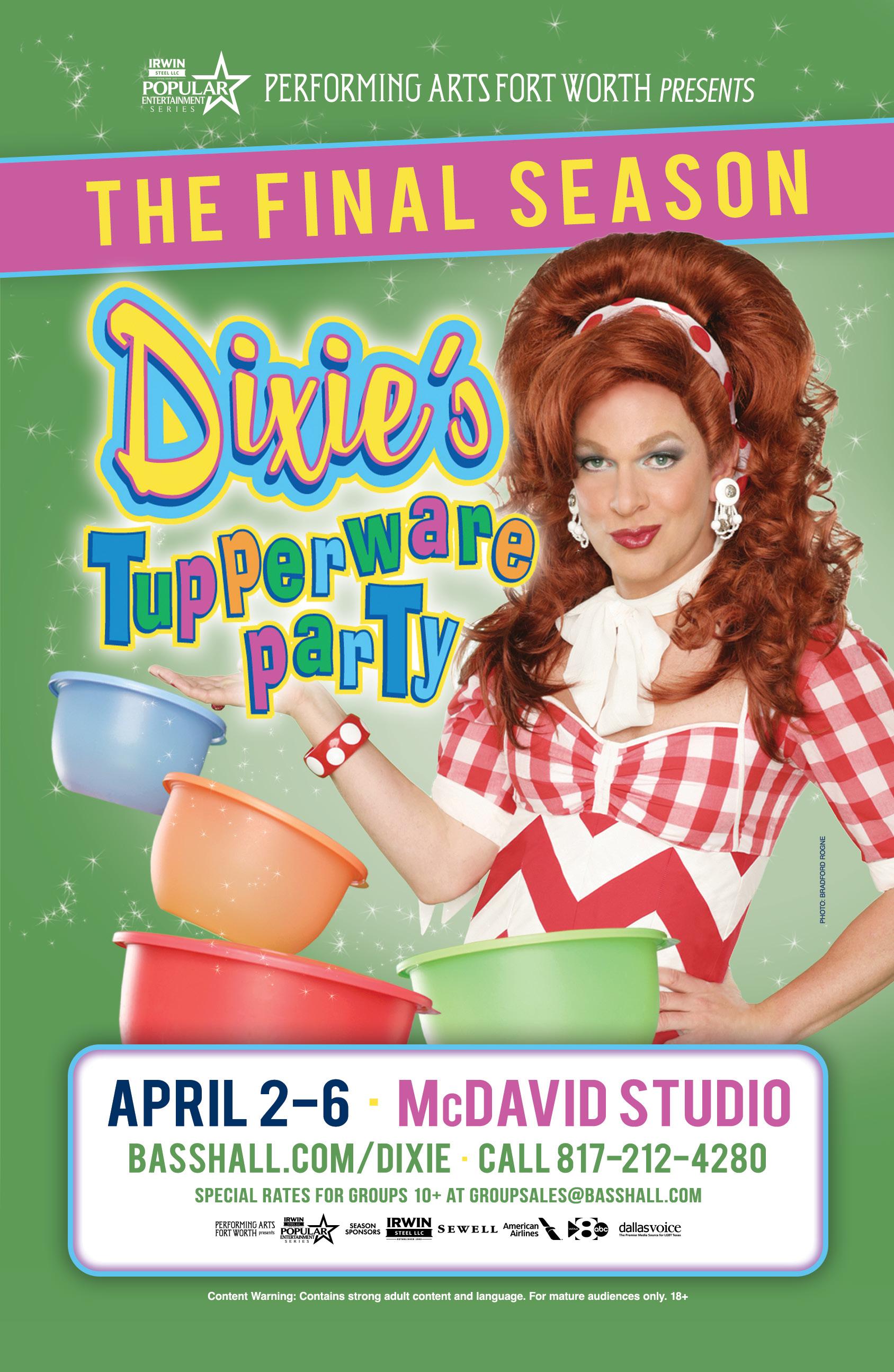 Irwin Steel Popular Entertainment Series Lineup. The series continues at McDavid Studio with the final season of Dixie’s Tupperware Party April 2-6, followed by the UNT One O’Clock Lab Band Spring Showcase, concluding the series on May 2.