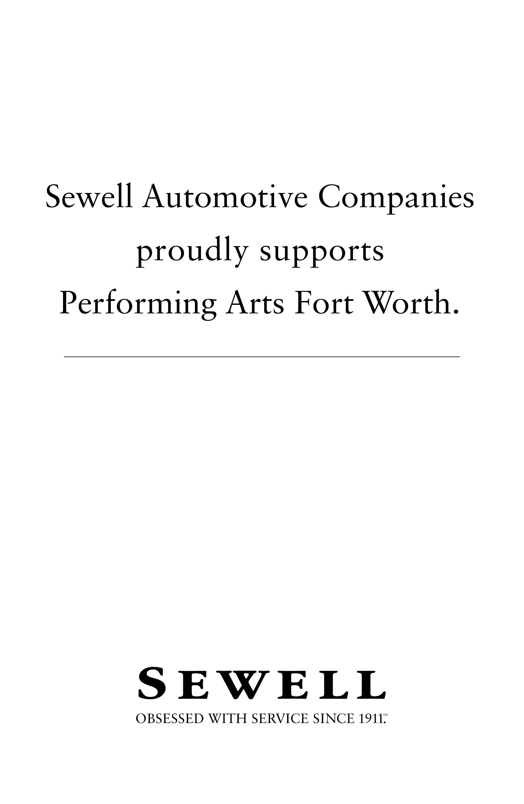 Welcome to Bass Performance Hall. On behalf of the Performing Arts Fort Worth staff and Board of Directors, I thank you for joining us.