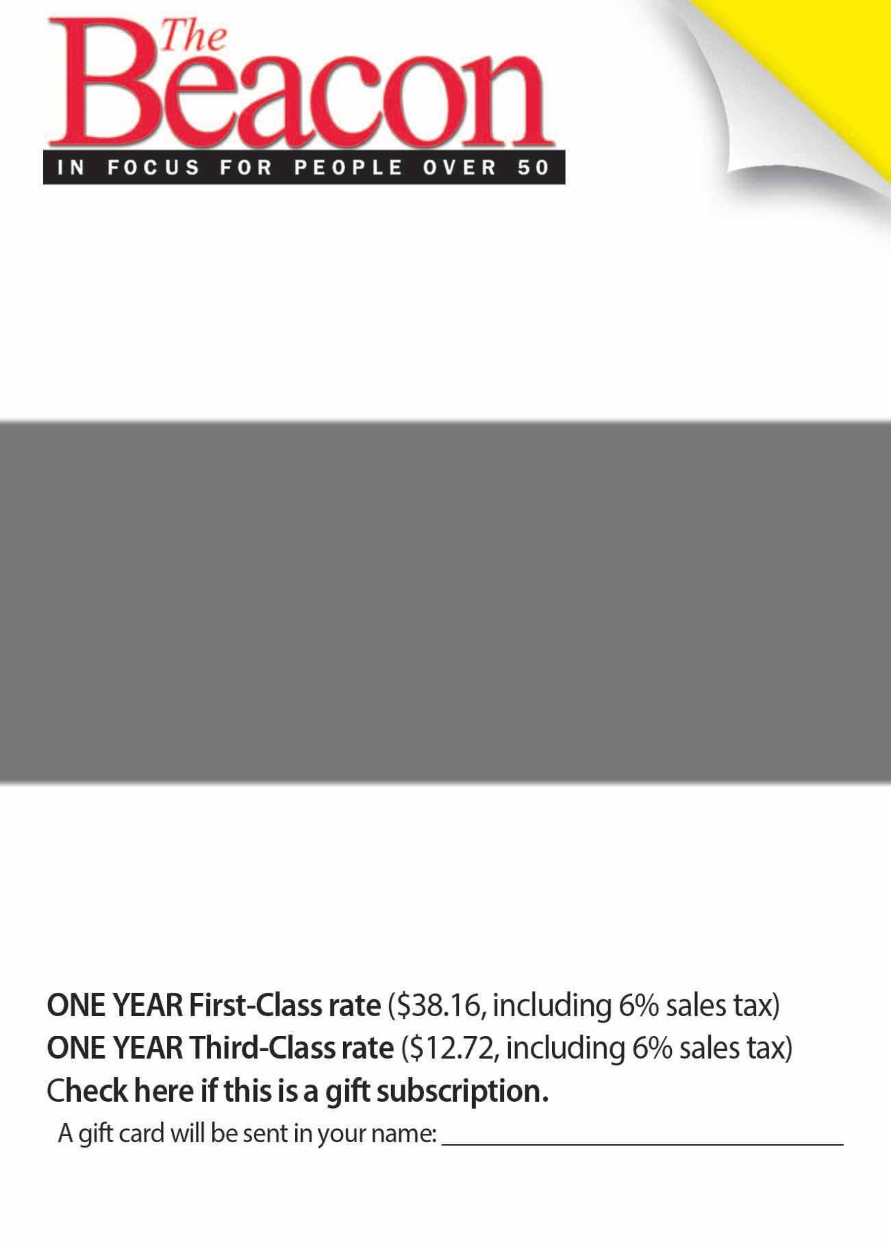 Submissions: The Beacon welcomes reader contributions. Deadline for editorial is the 1st of the month preceding the month of publication. Deadline for ads is the 1st of the month preceding the month of publication. See page 23 for classified advertising details. Please mail or email all submissions. © Copyright 2025 The Beacon Newspapers, Inc.