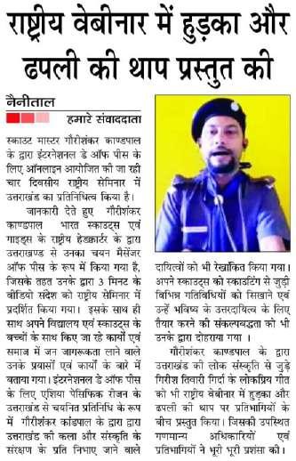 Hkkjr LdkmV vkSj xkbM] mÙkj çns'k ds vUrxZr tuin gkFkjl esa x.ks'k prqFkhZ ds volj ij Jh nkÅ th egkjkt esyk fnuk¡d 31 vxLr] 2022 dks vk;ksftr fd;k x;k ftlesa fofHkUu dkWystksa ds 60 LdkmV~l ,oaxkbM~l us Hkkx fy;kA bl volj ij esys esa LdkmV ,oa xkbM us cSaM fMLIys ds lkFk jSyh fudkyhA
