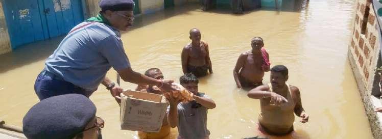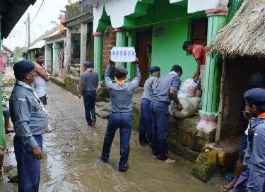 Odisha State Bharat Scouts & Guides organised Flood Service Camp in Three Phases at Puri and Cuttackdistricts from the month of August and 1st Week of September 2022 in which 143participants attended. In this connection State Headquarters provided packets of dry food, necessarymedicines,candles,matchboxes&cattlefoodstotheneedypeopleinfloodaffected areas. Rovers, Rangers & Unit leaders of Odisha State Bharat Scouts & Guides helped in packagingofdryfoodsanddistributionofreliefmaterialsatPuriandCuttack.