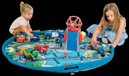 Spread the Play Pouch out for play. When it is time to pack away, pull on the ropes and pups and vehicles are stored away for another day's play!
