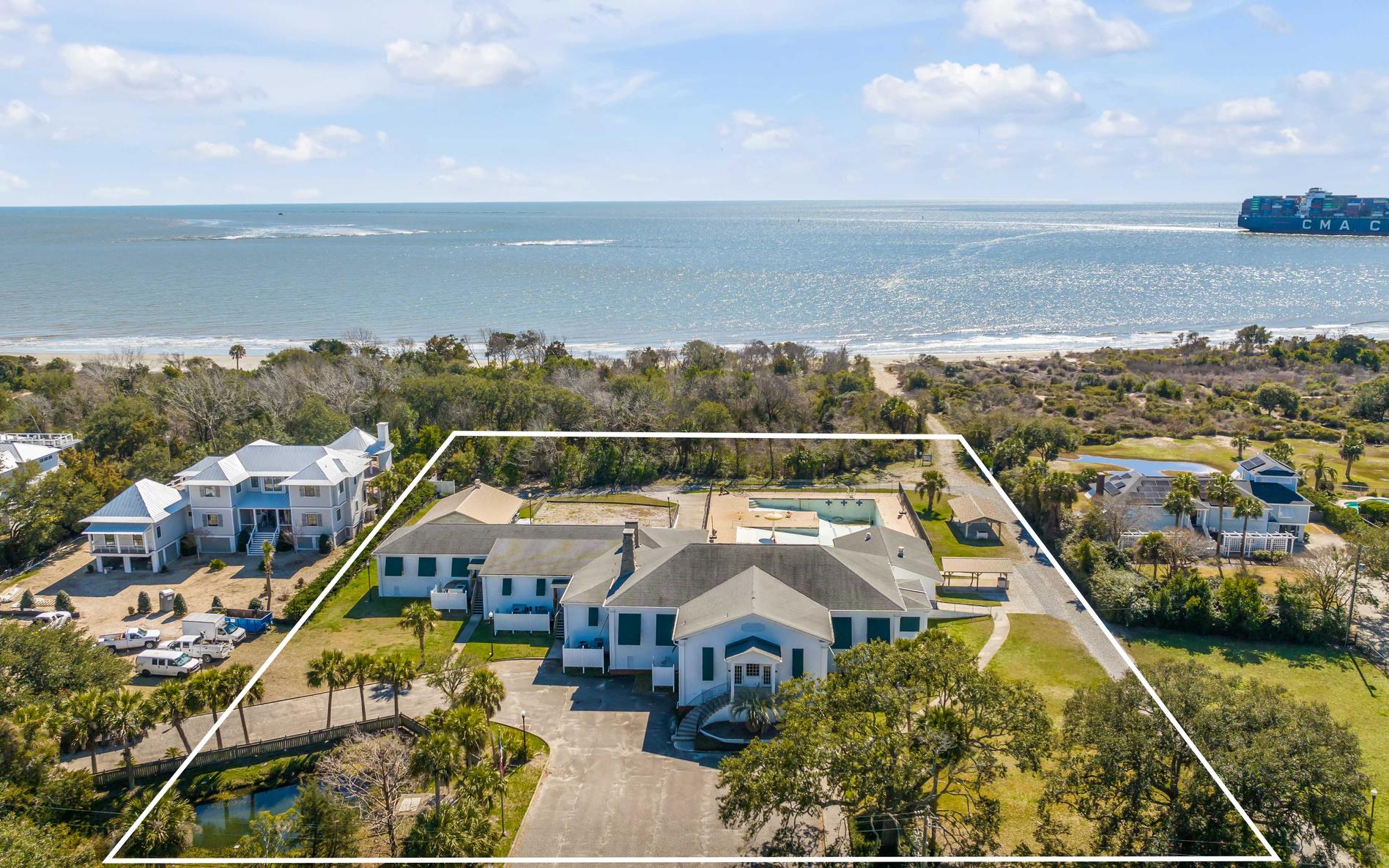 Steeped in history, the property includes a 1930's clubhouse (formally known as the Sand Dunes Club) ripe for transformation into a stunning single-family residence, the only allowable use for this parcel per the Town of Sullivan’s Island The property includes the historic beachfront venue, swimming pool, and direct beach access With one of the largest building footprints on any barrier island East of the Cooper, the property allows for nearly 10,000 square feet of living space Artistic renderings have been completed by renowned Charleston firm, Beau Clowney Architects, to help you envision the possibilities, including a 7-bedroom bespoke residence marrying historic charm with effortless Lowcountry living