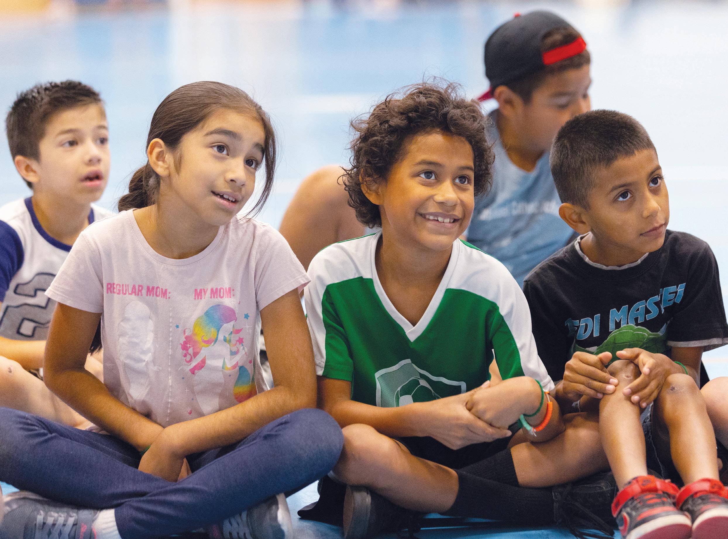 Front row, from left, Sophia Basurto of Sacred Heart in Robbinsdale, Julio Cesar Ocampo Jr. and Noah Ocampo, both of St. Raphael in Crystal, react to a skit performed by missionaries of Totus Tuus (Latin for Totally Yours) July 18 at Sacred Heart. The missionaries, which include young adults from the Archdiocese of St. Paul and Minneapolis, lead parish-based summer catechetical programs throughout the archdiocese for elementary and high school youth. This is the third year Sacred Heart has had Totus Tuus, said Morgan Leisgang, who works at the parish and teaches religion at Sacred Heart Catholic School. “It’s been a huge gift to us,” she said of the Totus Tuus program. “The theme this year is the Sorrowful Mysteries (of the rosary) and salvation history. … The kids made a covenant to God this week that they would pray more, learn more and have fun. That’s the summary of what Totus Tuus is: praying more, learning more and having fun.”
