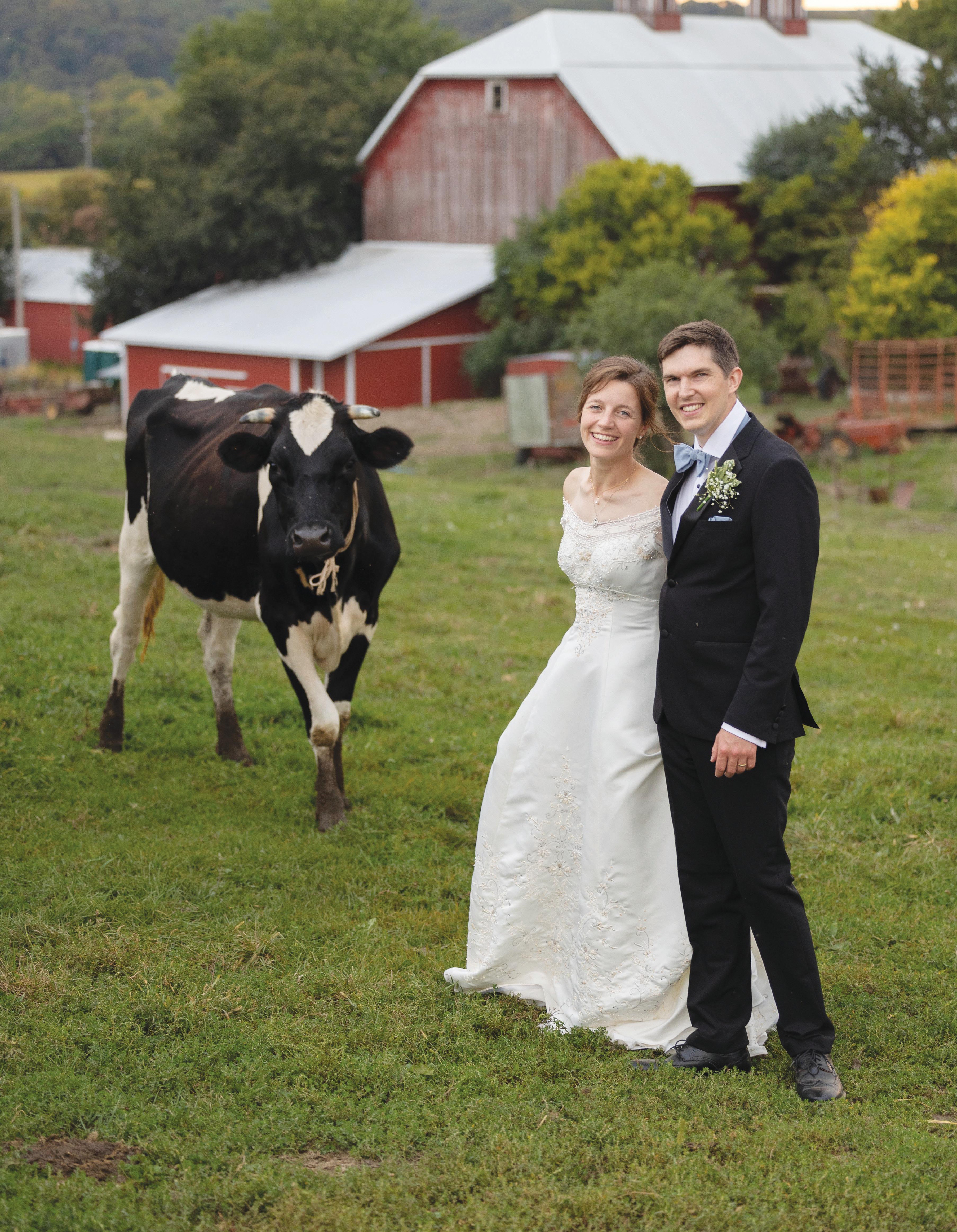 Bridgette and Jake Kappers stand in the pasture of his family farm shortly after their wedding Mass Sept. 14 at St. Mary in Chatfield. The two met at the St. Paul Farmers’ Market in 2022 and plan to build a life on the dairy farm. Bridgette grew up in the Twin Cities, while Jake is a lifelong resident of rural Chatfield, south of the Twin Cities. DAVE HRBACEK | THE CATHOLIC SPIRIT