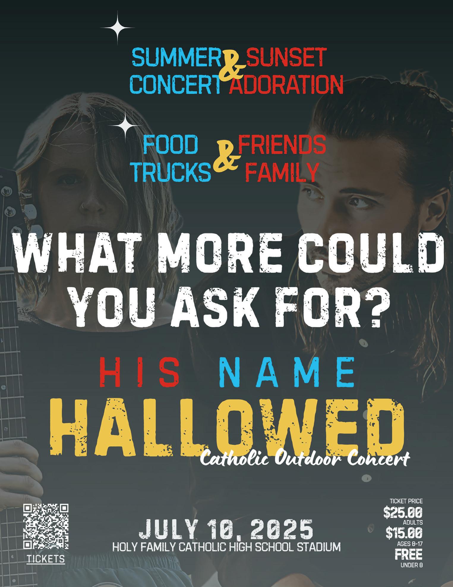 Tickets for the event are available at hisnamehallowed.com. Individuals or groups unable to afford the concert can send an email for assistance to tickets@hisnamehallowed. com. At the same email address, Minneapolis-based Catholic Schools Center of Excellence has offered to cover the ticket costs of any Catholic school that would like to send a group of students to the event.