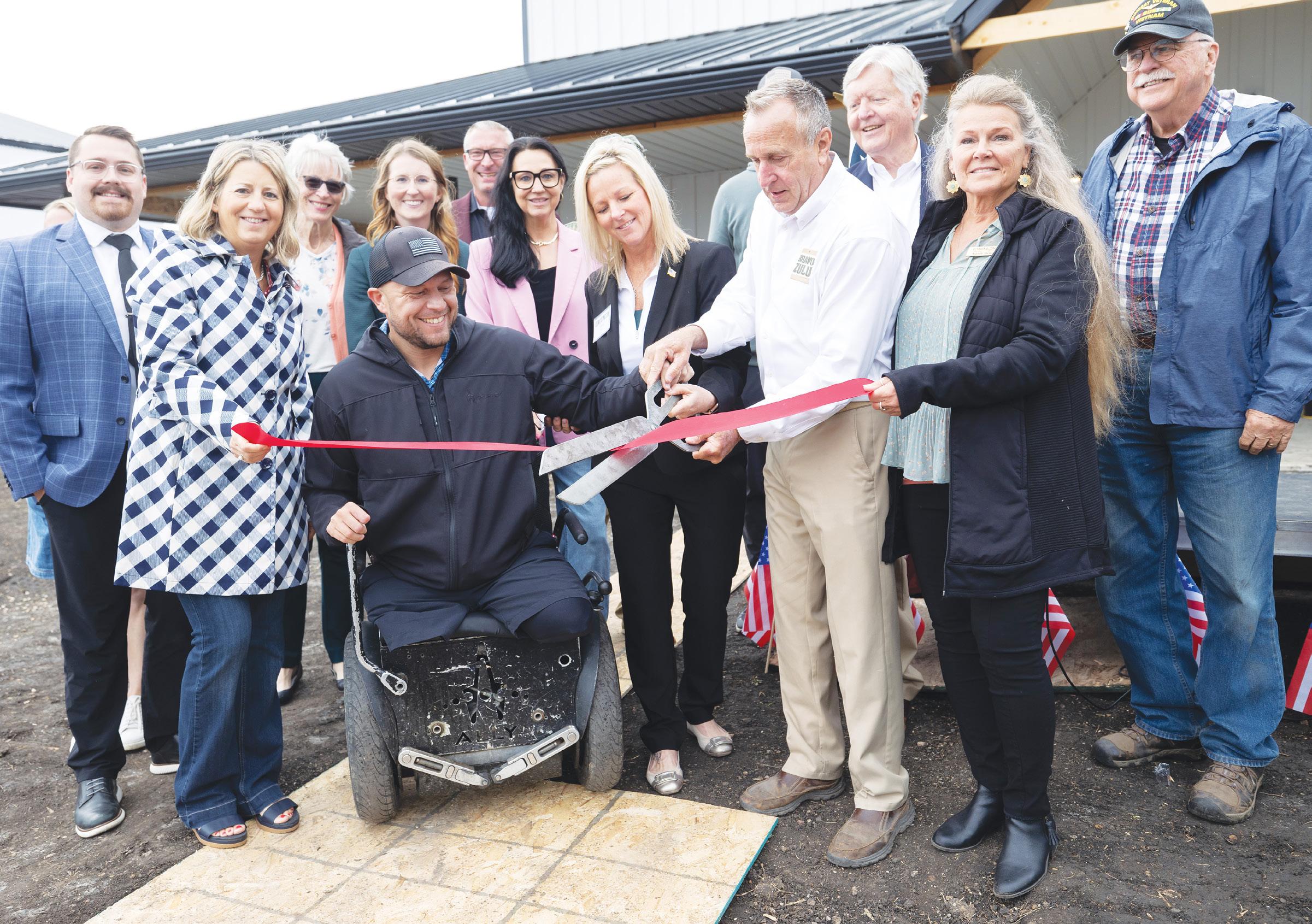 Tim Murray (holding large scissors), executive director and founder of Trinity Sober Homes in St. Paul, cuts a ribbon with help from Jack Zimmerman, a military combat-wounded veteran, to mark the grand opening of Bravo Zulu House, a facility two hours south of the Twin Cities that Murray created and raised money to build as a way to help military veterans who suffer from Post Traumatic Stress Disorder and addictions to drugs and/or alcohol. Noting the high suicide rate among veterans, Murray and a group he formed to spearhead the project raised $1.3 million to finance construction of the 6,000-square-foot home, which will house up to 12 military veterans beginning in June. Bravo Zulu House is an outgrowth of Trinity Sober Homes, which Murray launched in 2012. Trinity has helped hundreds of men ages 40 and older in their recovery from addiction, but Murray was looking for additional ways to make a difference. “What we concluded was, after 10 years of operation, that the military was the most underserved market,” said Murray, 66, who is a member of All Saints in New Richland. “Since 2001, since 9/11, we lost about 7,500 troops in combat, and we mourn every one of those losses. ... In that same 24-year period, more than 120,000 veterans have killed themselves. And yet, virtually nobody knows about that. It’s a silent epidemic.” Bravo Zulu House is for men who have served in the military. Murray noted a similar house will be constructed for female military veterans.