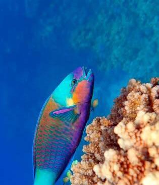 THE RAINBOW PARROTFISH CAN GROW OVER FOUR FEET (1.2 METRES), MAKING IT ONE OF THE LARGEST HERBIVORES ON REEFS.