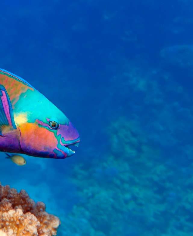 In the surrounding seas, we encounter the colourful parrotfish, the stars of our conservation feature. As the reef’s noisiest and most dedicated gardener, these vibrant creatures keep coral ecosystems thriving and even help shape the very beaches we walk on.
