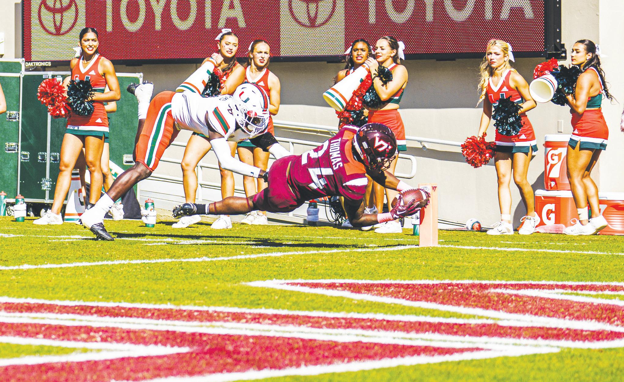 Thomas led the Hokies in both rushing and receiving, with 41 rushing and 43 receiving yards. Defensively, Jalen Stroman had 11 total tackles,
