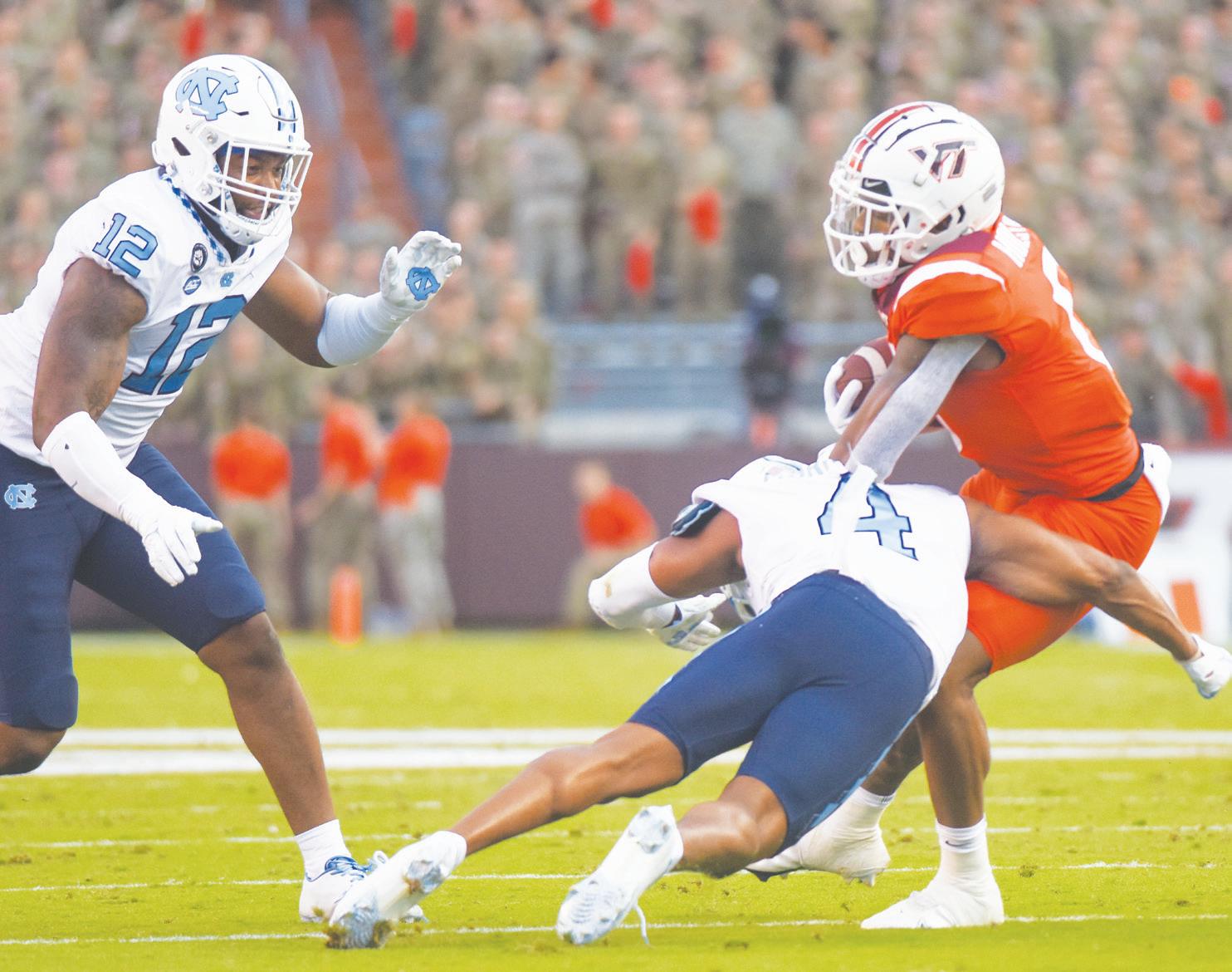 The Hokies’ offensive struggles carried over from last week despite the Tar Heels ranking last in the ACC for total defense. The unit’s only points came on a William Ross field goal and a 2-yard touchdown rush from