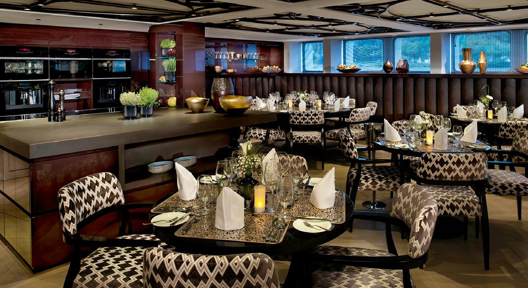 Watch as an expert chef meticulously prepares a truly exquisite seven-course tasting menu complemented by fine wines, included in the river cruise fare.