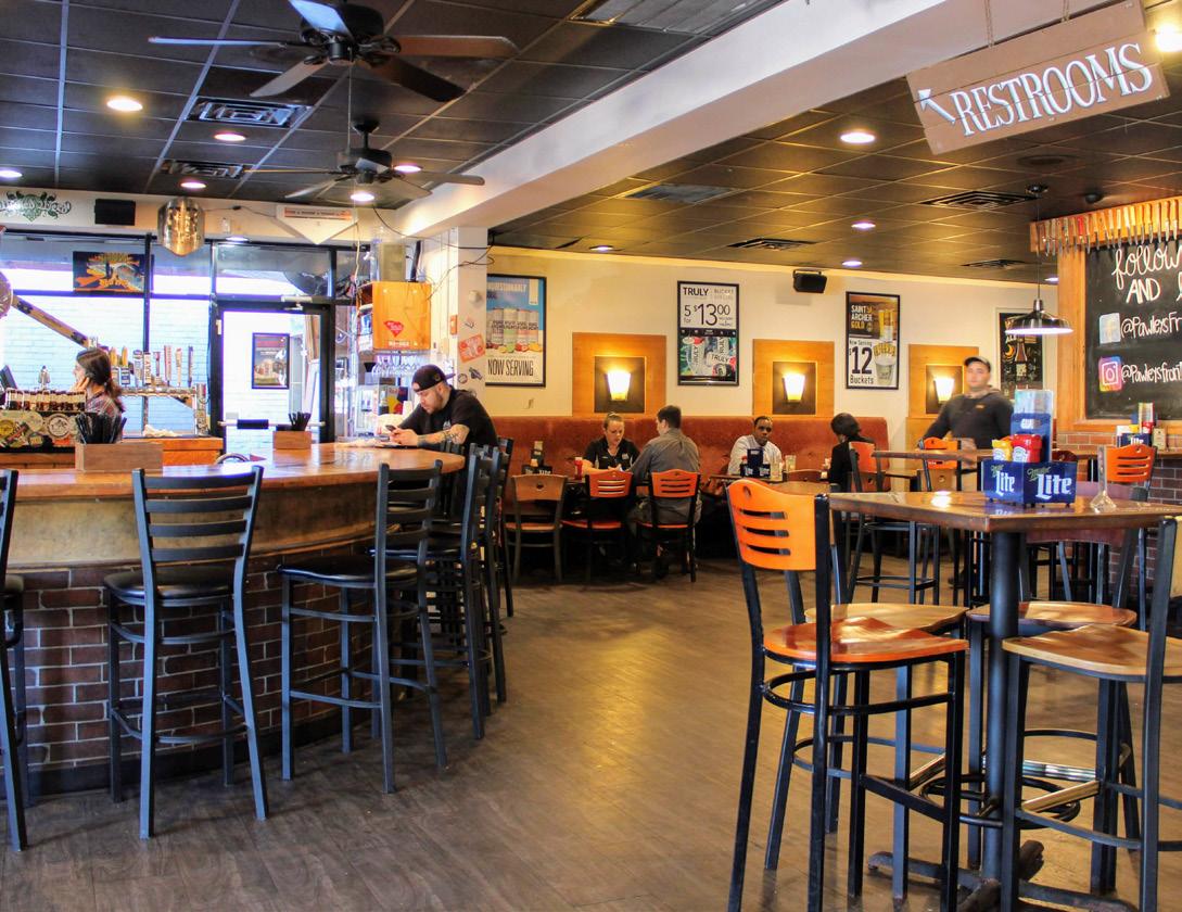 upbeat atmosphere that encourages guests to hang out before, during and after dining.”