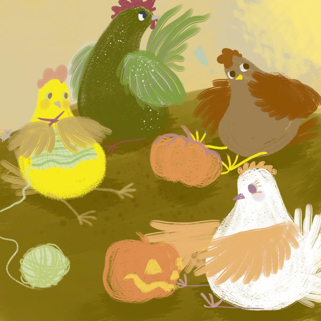 Try to find all of the different details between two colorful fall-themed illustrations.