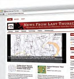 Of her “Never Have I Ever” feature spread on pg. 34, designer Anna, a third-year visual communications student, says: “I let the tones in the picture drive my color scheme. To be honest, I really don’t know anything about drinking games, but I wanted to do some dramatic lighting.” Anna loves working for G&B because “I am given a lot of creative freedom.” In addition to updating her blog, she works on her joint company, HYCO.