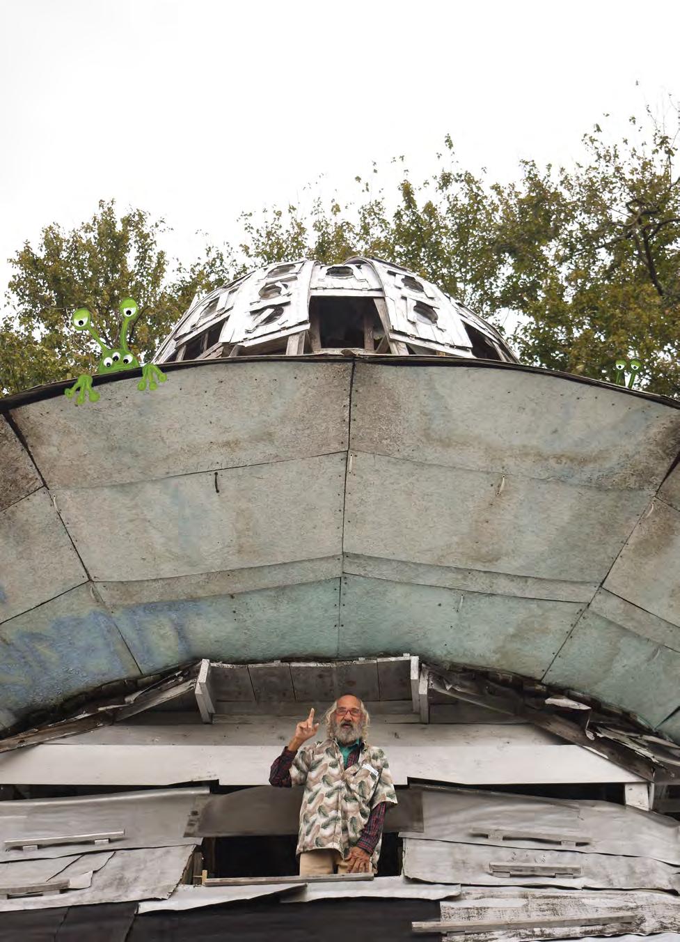 When driving down I-26 South, perhaps on a road trip from Columbia to Charleston, you may stop to fill up your tank at an unassuming exit indicating it leads to “Bowman.” A typical middle-of-nowhere pit stop, there doesn’t appear to be much at the exit except for one gas station, with the rest of the area just a combination of forest and farms. Leaving the gas station, however, a small, unassuming cardboard sign on the side of the road might catch your eye, reading “UFO — 5 miles,” as an arrow points rightward down the road. Following the sign will lead you down curving roads, past farms and into a small town with not much except for an aging gas station and, to its right, what appears to be a giant, wooden, trash-laden fort.