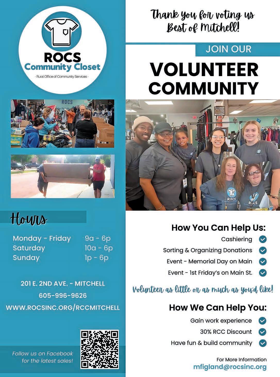 2 | 2024 BEST OF MITCHELL ThankyouforvotingusBestofMitchellfiveyearsinarow! Whetheryouarelookingfor someonetohelpanagingparent afewhoursaweekorneedmore comprehensiveassistance,Home Insteadcanhelp.Hourly,overnight, or24/7careavailable. ServingclientsinMitchell,Huron,Yankton,andsurroundingareas Mitchellowned-Veteranowned PERSONALCARE|HOMEMAKER|COMPANIONSHIP|MEALS&NUTRITION HOSPICESUPPORT|TRANSPORTATION|RESPITE|MEMORYCARE Call (605)996-0503 orvisit HomeInstead.com/425 EachHomeInstead® officeisanindependentlyownedandoperatedfranchiseofHomeInstead,Inc.,anHonorCompany.©2023HomeInstead,Inc.