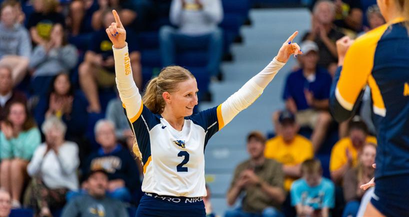 Erika Bute celebrates a point on Sept. 16, 2023, at the Elmen Center at Augustana in Sioux Falls, South Dakota. COURTESY / AUGUSTANA ATHLETICS