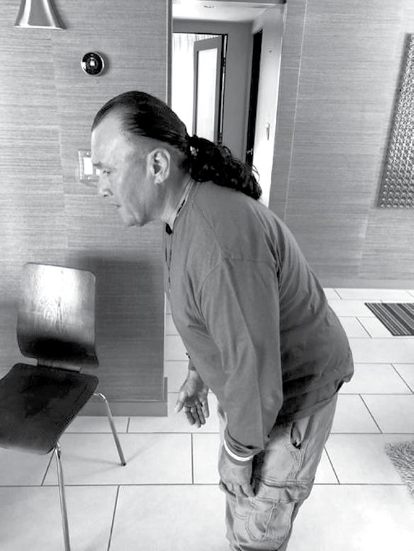 In August 2017, two years after the initial arbovirus infection, Mr. Mata stood up by himself at the counter of the pain clinic, using what he learned from all the weight-bearing movements on the floor, in sitting, and on his hands and knees. [Fig 1] His improvements gave him confidence and motivated him to continue to learn and improve. Once he had sensation in his legs, he felt renewed purpose and possibilities for his life.