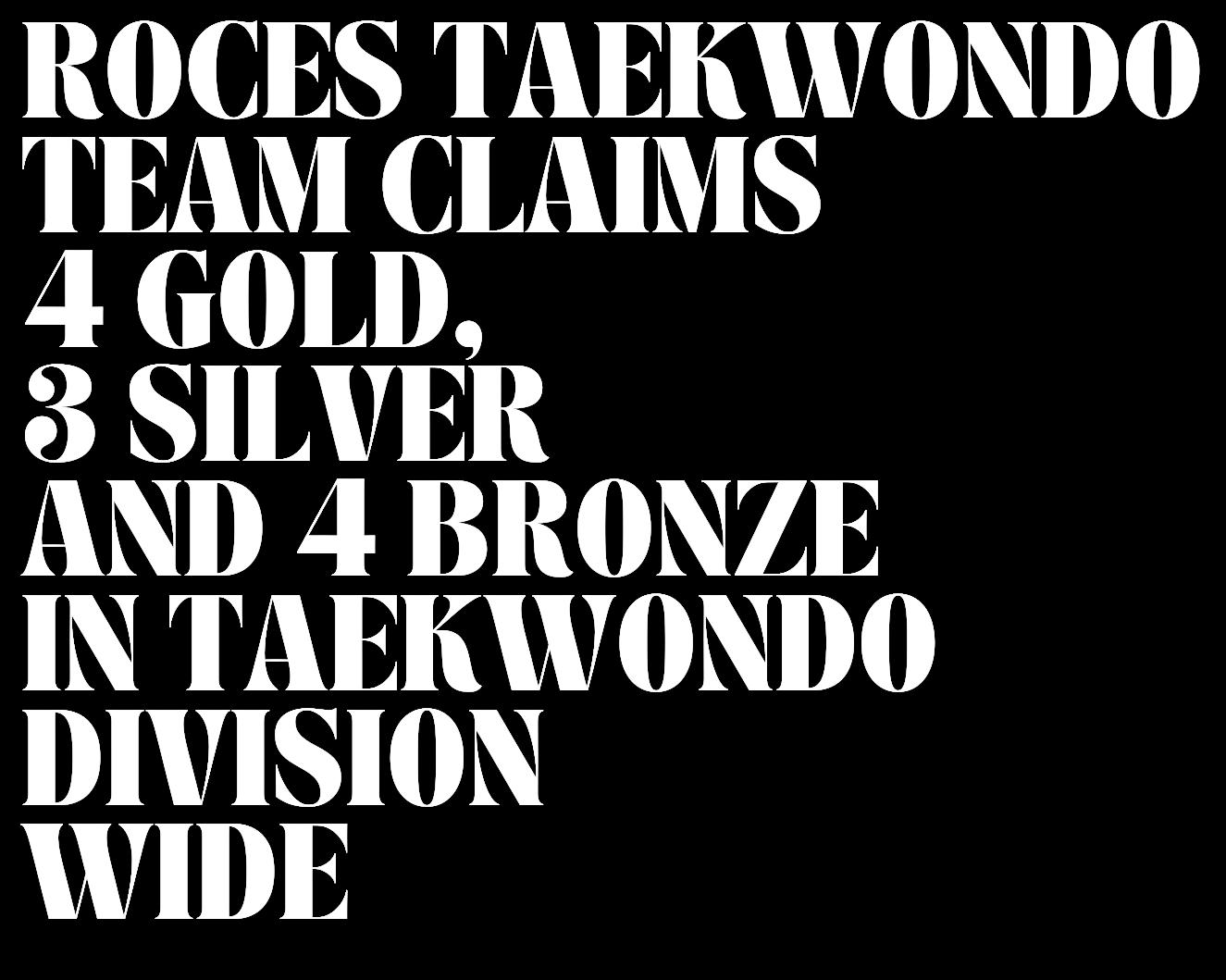 "Makikita mo yung eagerness and willingness na manalo ng mga bata," said Assistant Coach Ma Victoria Dela Luna Come into possession of Taekwondo Girls Over All ampion, Roces cleared the way for gold medalists Alexa Shicainna Dela Torre, ina Nicole Roquel, Kinsley Galapin, and Vanesse Catubag eisha Louise Laus also earned the silver medal, celebrating wins with bronze medalists ncess Kyle Faustino and Amanda Caitlin Domingo Ang ganda naman ng mga pinakita nila, ng s nila