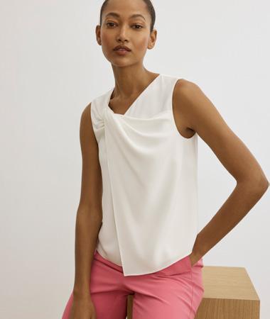 DELIA SHIRT White Italian stretch cotton. Also available in marine blue. INES CAMI. Black stretch silk satin.
