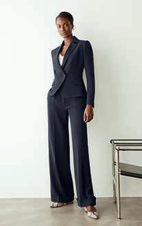 This page: MONTELLO KNITTED TUNIC. Terracotta lightweight knit. WIDE-LEG TROUSERS. Ivory Clever Crepe. Also available in black and navy. AUGUSTA 25 FLAT. Snakeembossed leather. Also available in burgundy. Facing page: INGHAM KNITTED JACKET. Navy cottonblend crochet knit. Also available in ivory. BALERNO TROUSERS. Navy silk crepe de chine. Also available in black and damson.