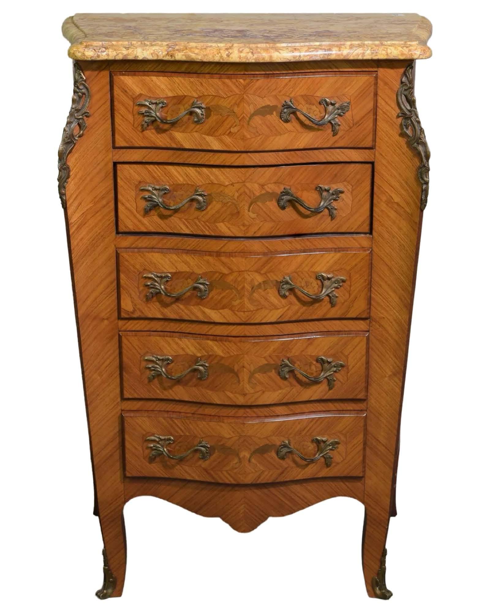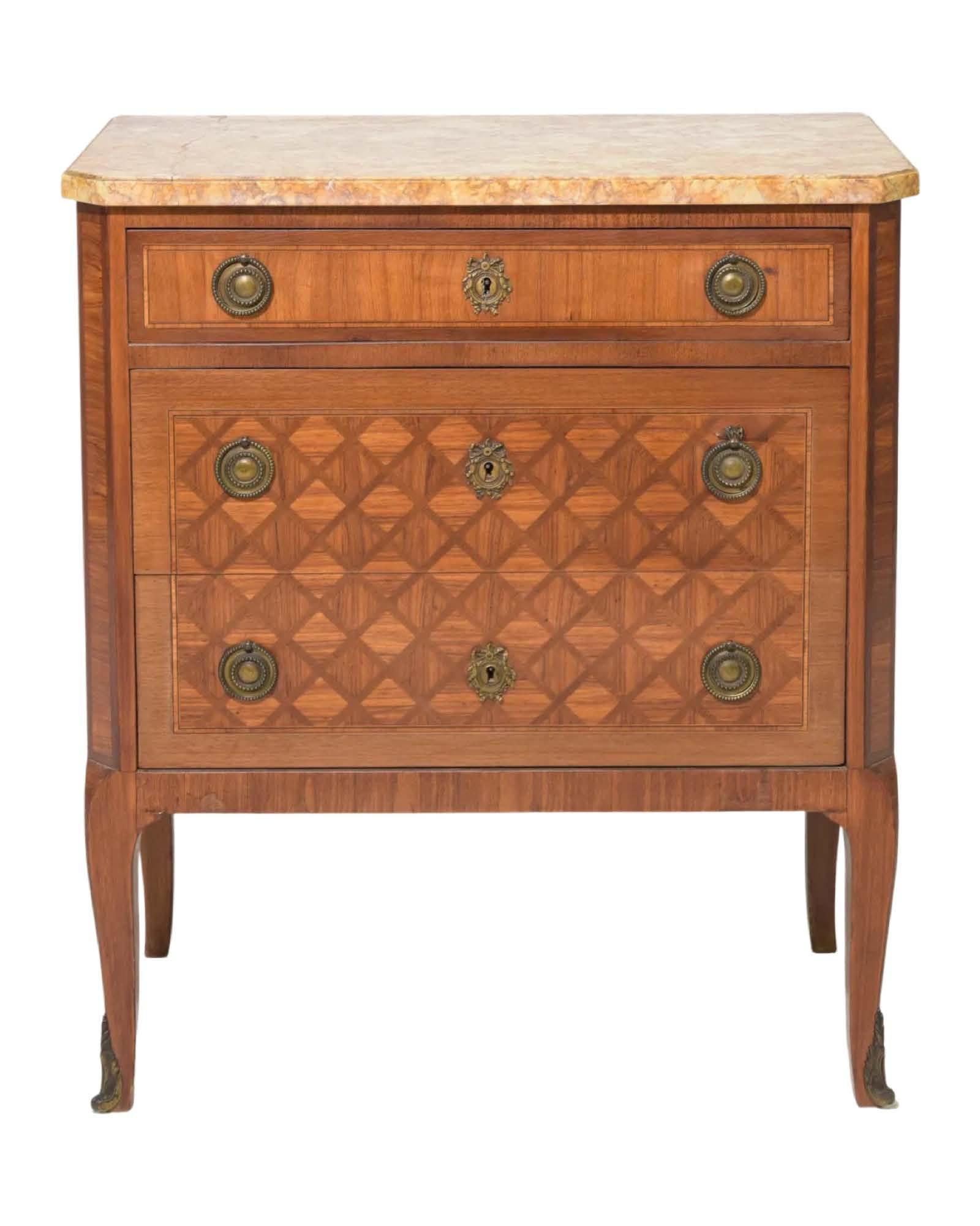 Antique Louis XV Style Marble Top Marquetry Inlaid Petite Chest