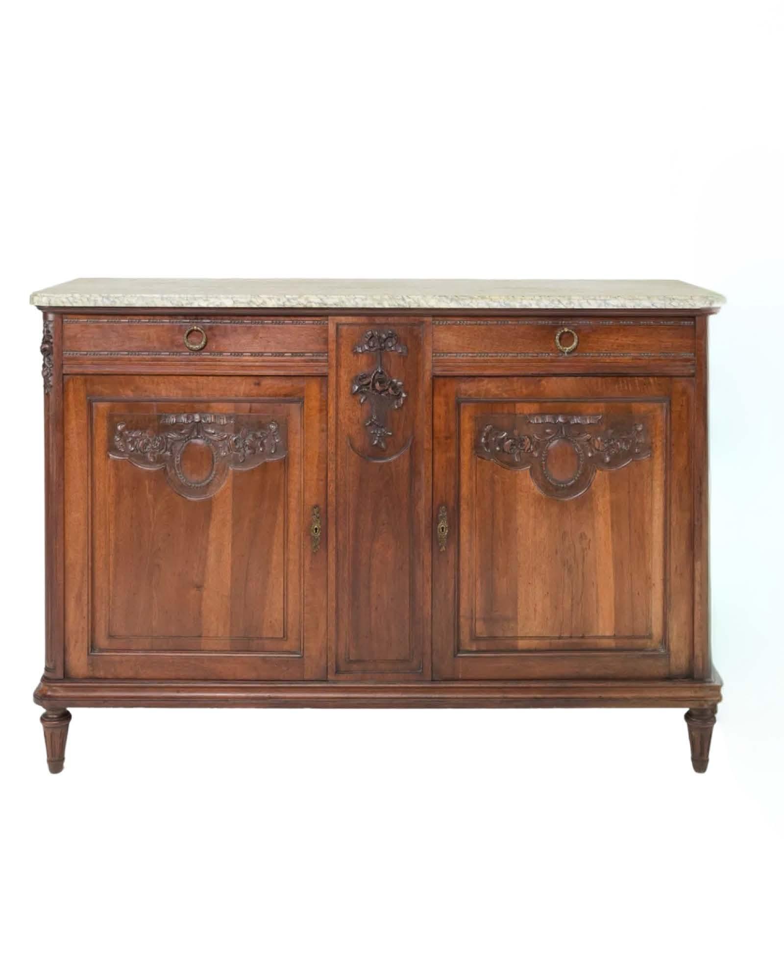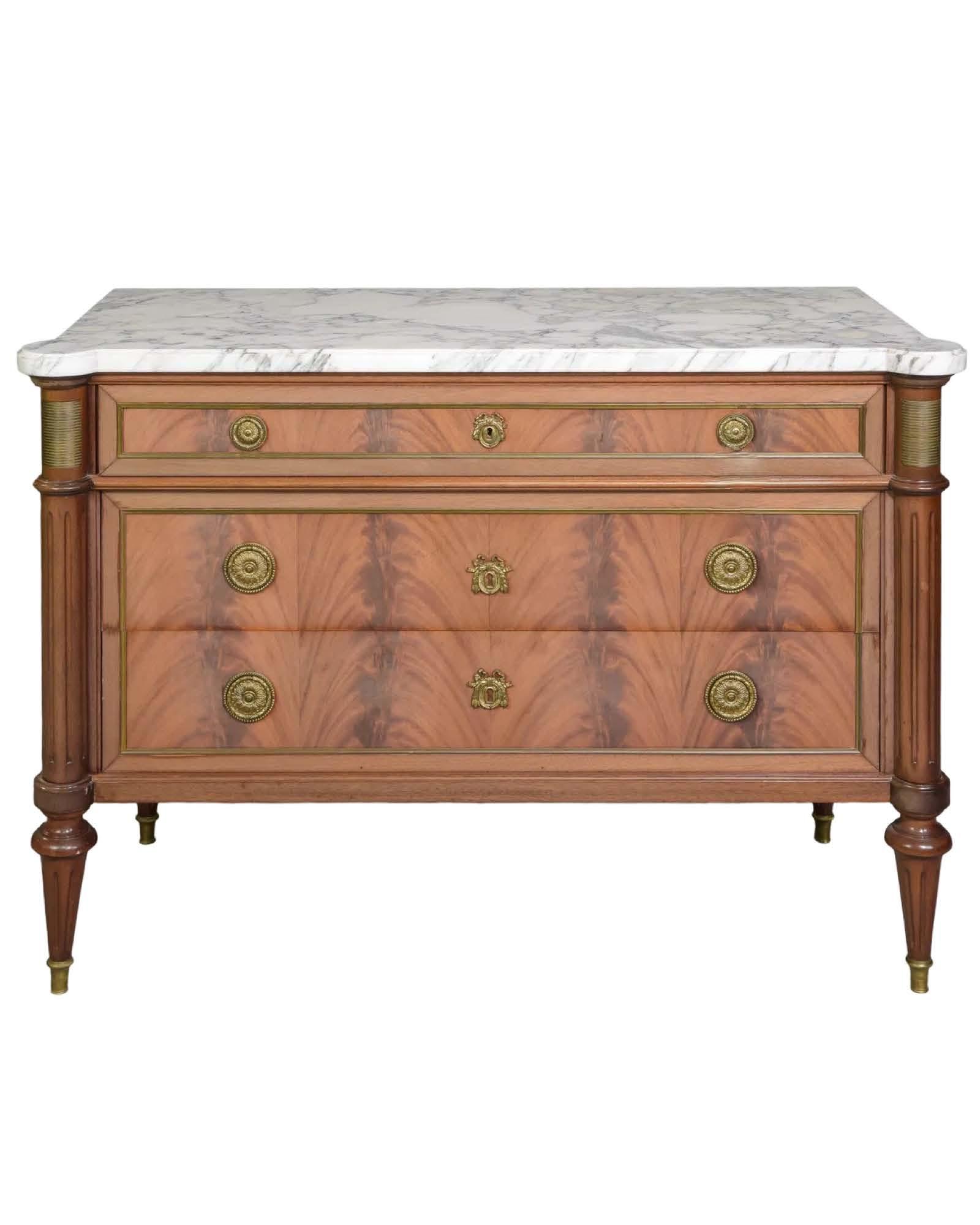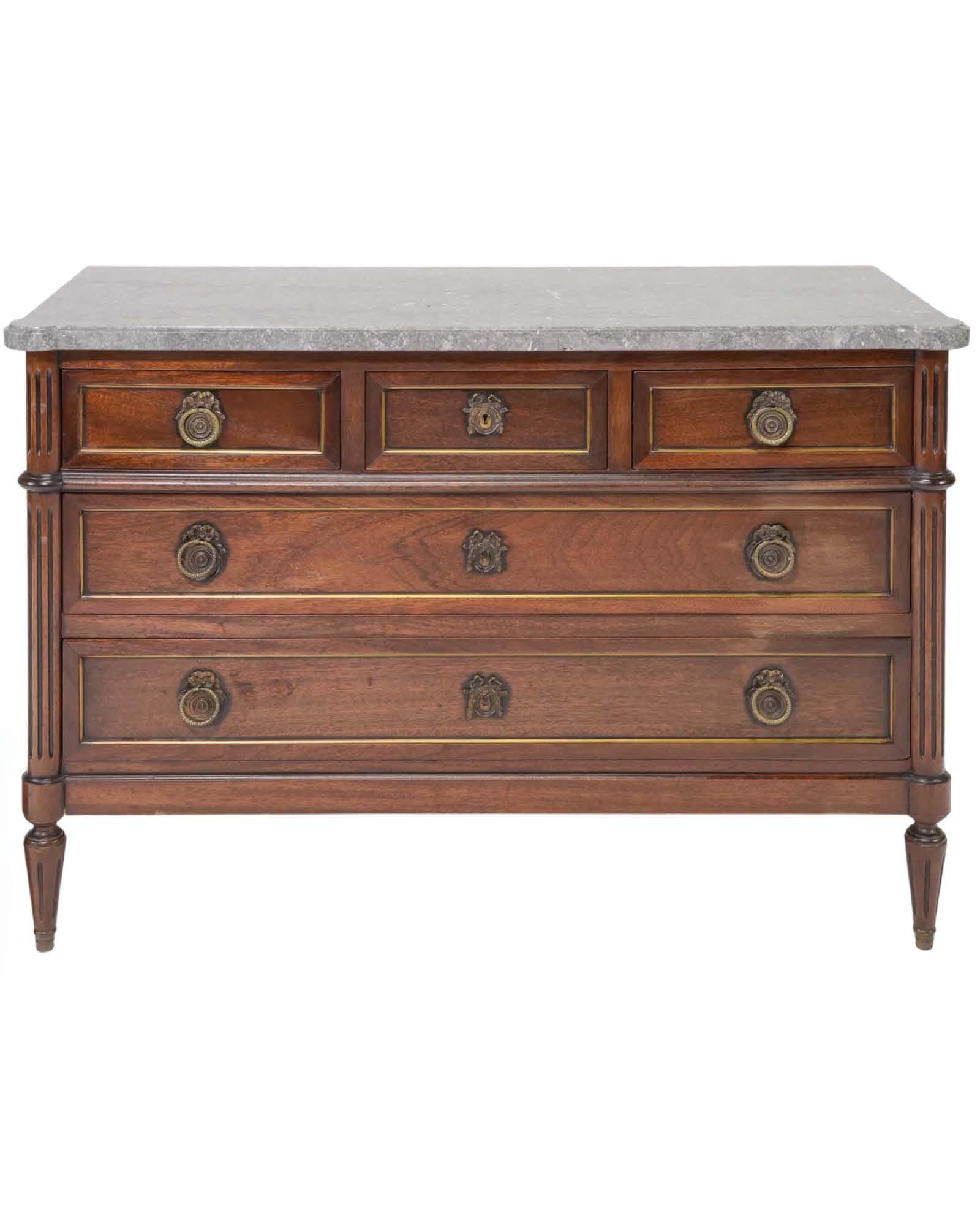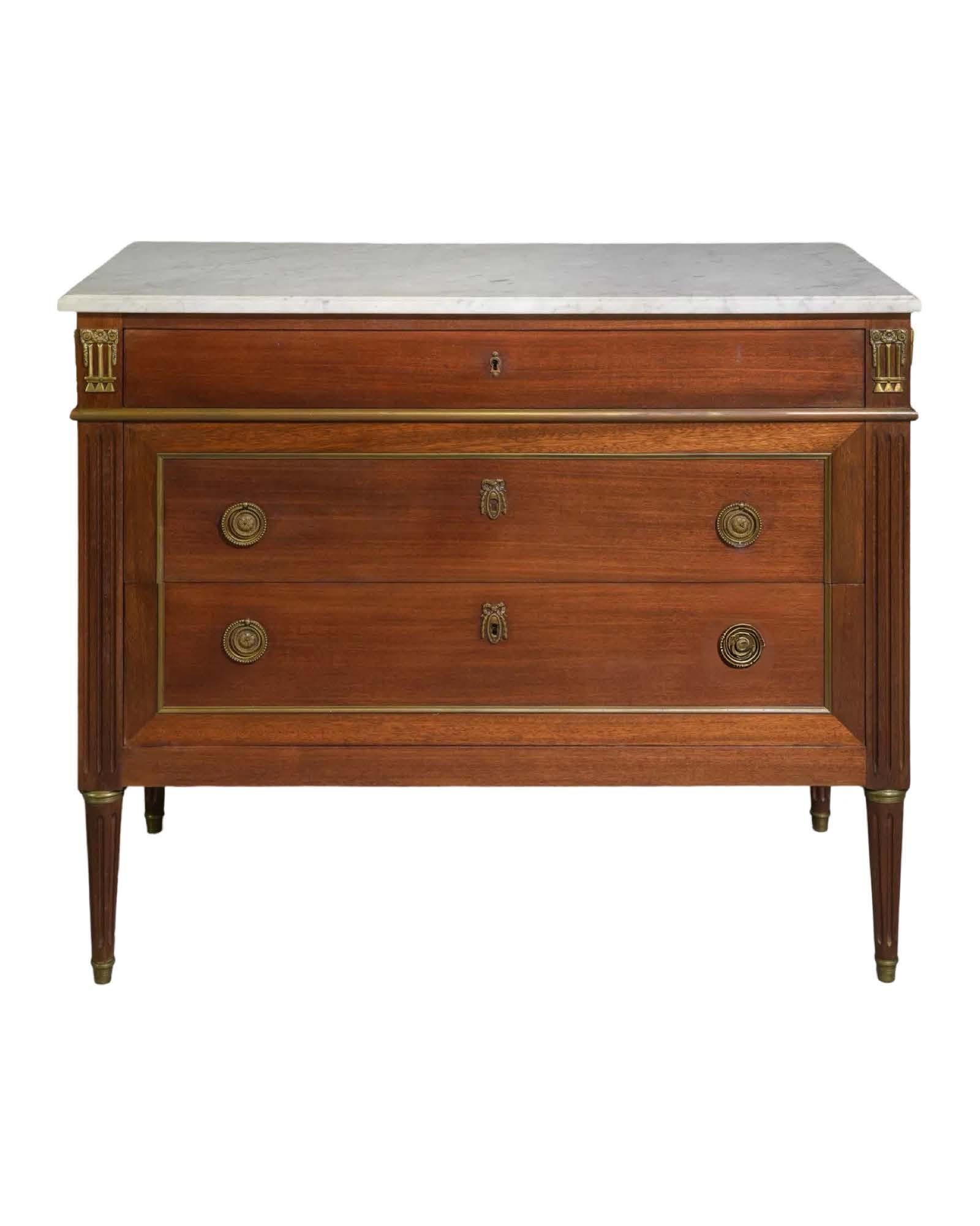 Antique Louis XVI Walnut Petite Chest with Inset Marble Top