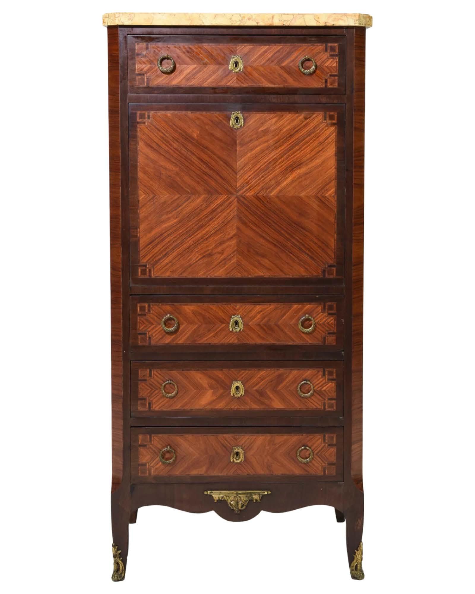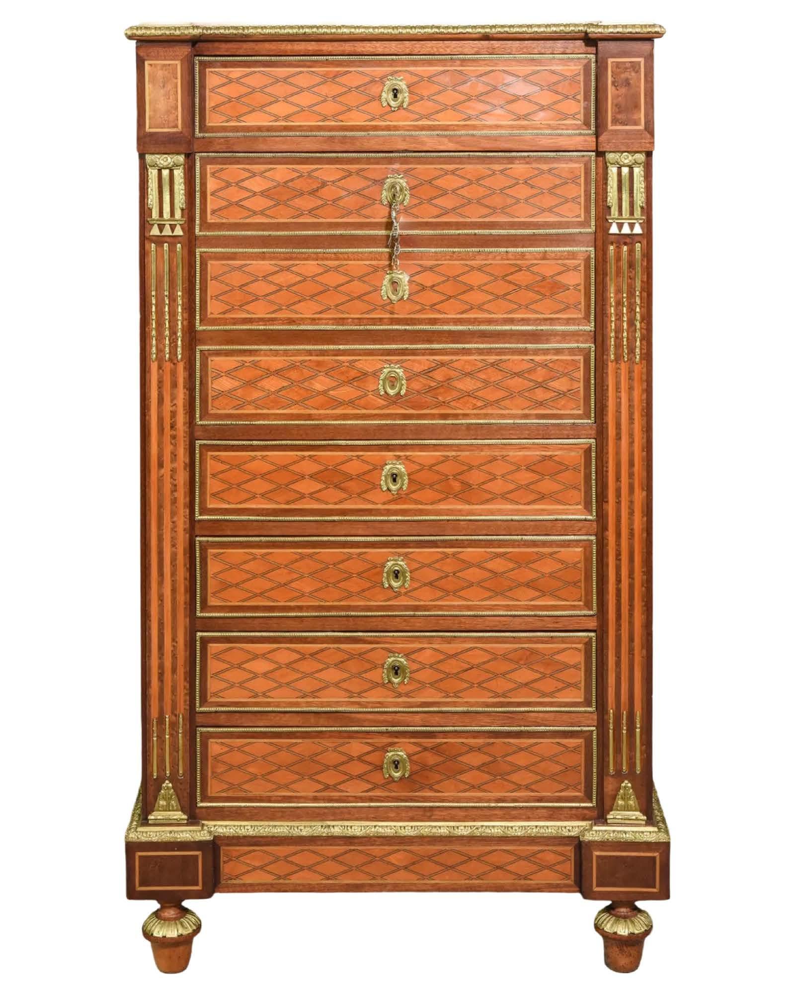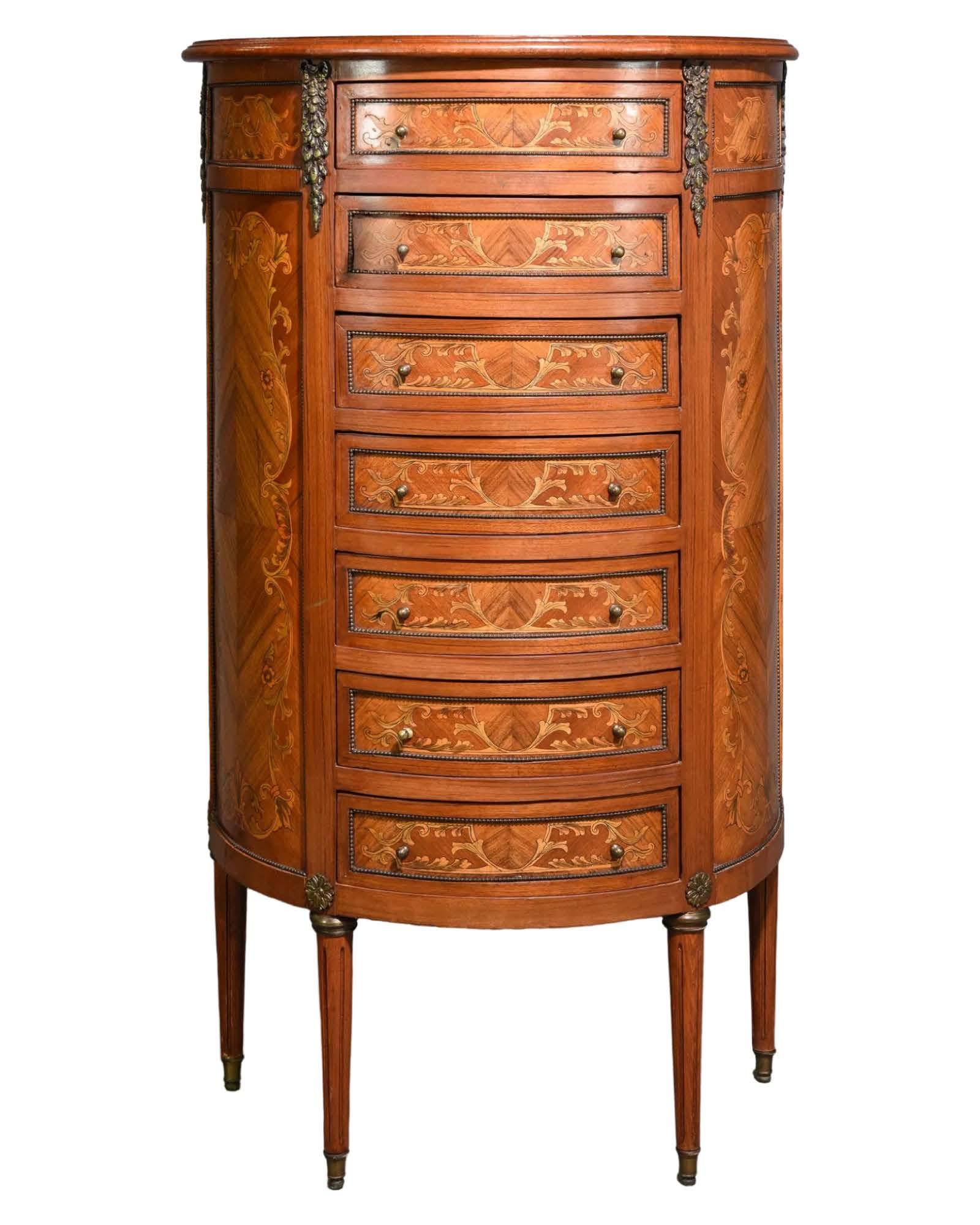 Antique French Bombe Semanier with Marquetry & Ormolu