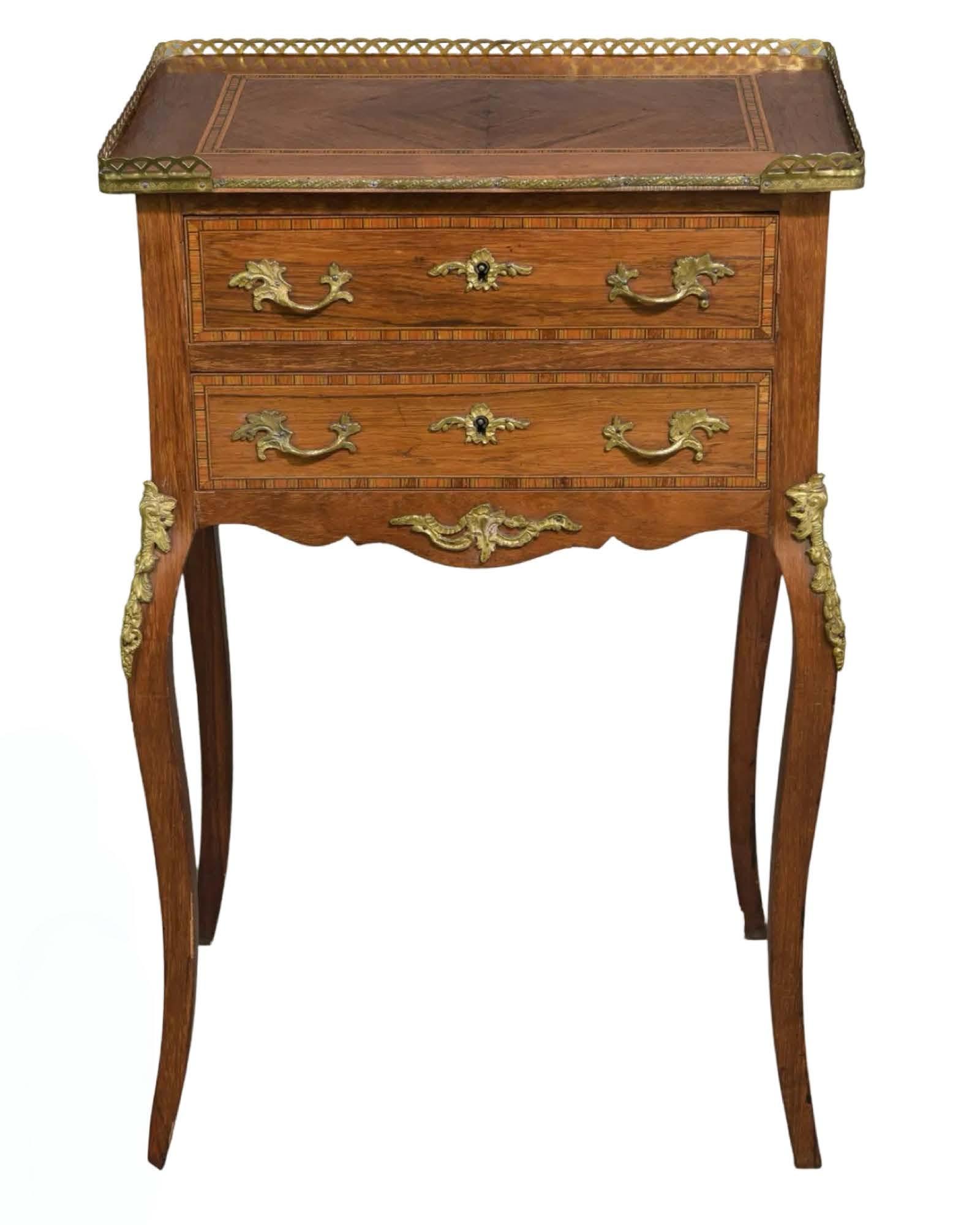 Louis XV Style Parquet Top Three Drawer Bedside Chest