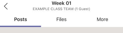 • When you open one of the Week channels, you will see a tab called ‘Posts’. This is where the the class chat feed is for that session, and where the live session link is. This feed is where you will post pictures and leave comments during class.