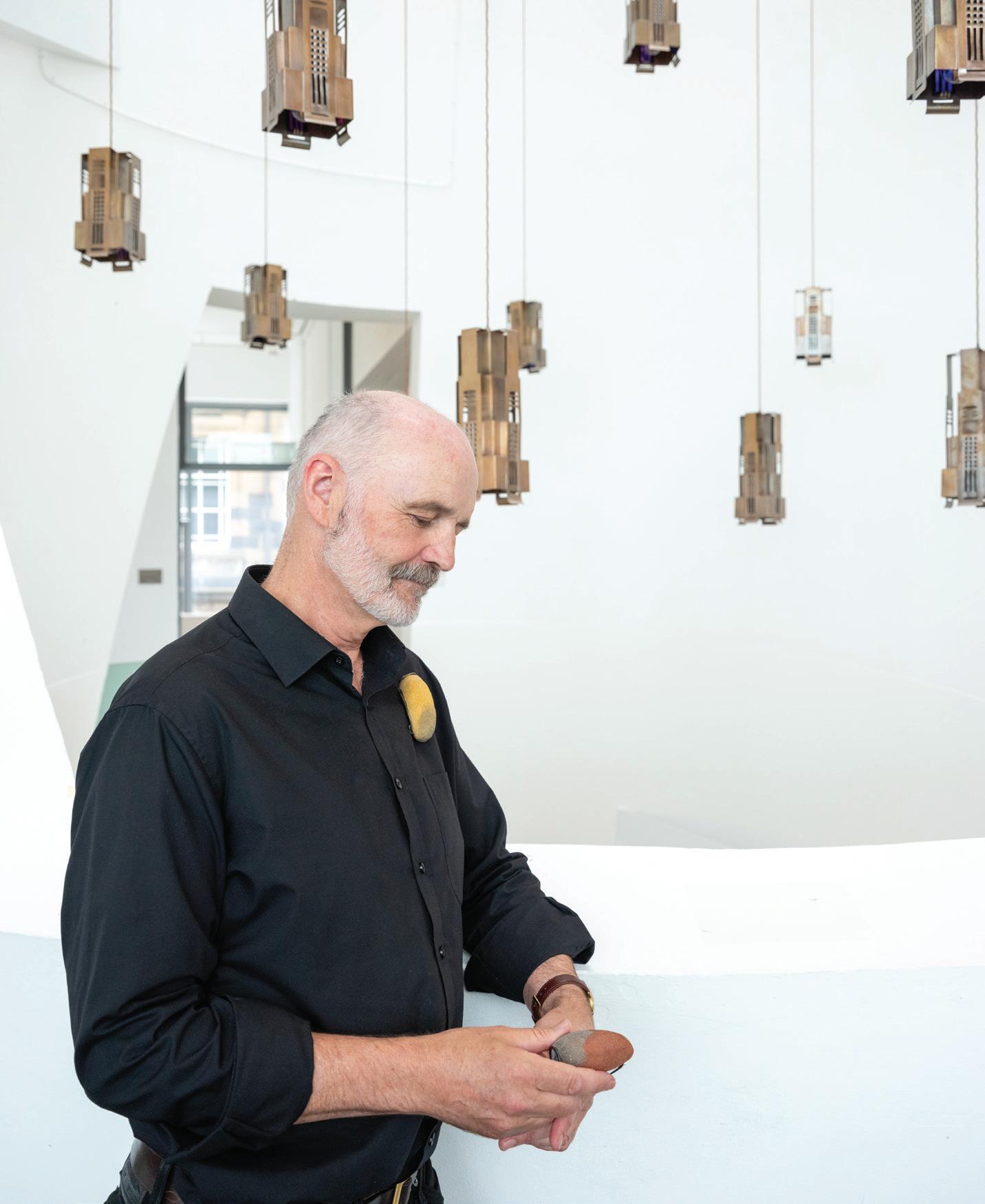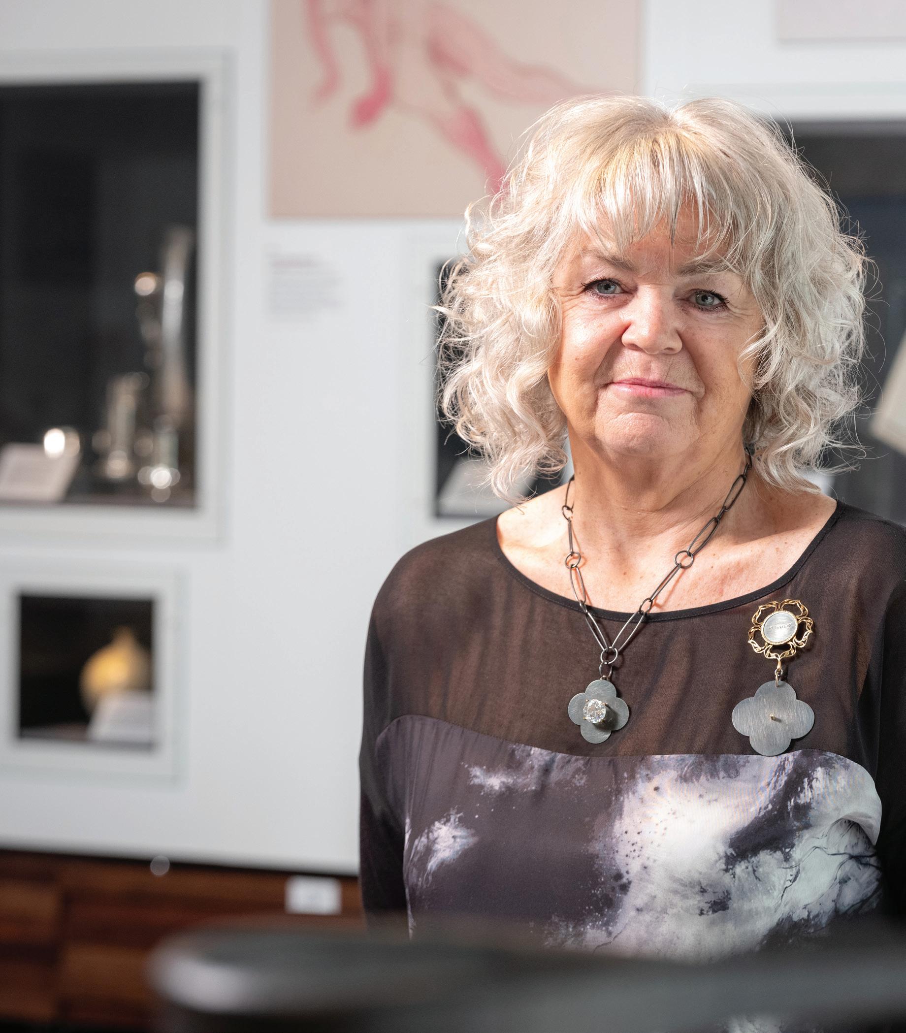 As Programme Leader, Anna has overseen the high-profile development of the Department with a carefully planned balance of part time and visiting tutors and artists’ residency programmes. There is always a significant presence of her student cohort in London’s ‘jewellery Oscars’ the annual Goldsmiths Crafts and Design Awards (in 2023 GSA students led the field with 23 awards). In recent years, she has built a growing number of projects such as Bus Stop Jewellery Conversations (https:// busstop.jewelleryconversations.com) which has helped sustain the relationship between city and department through the challenges of Covid years and then the double fire of the Mackintosh Building in 2014 and 2018. She is clear that Glasgow is her artistic home and the can-do attitude of a city built on making (Clyde-built is an expression for solid craftsmanship which derives from the shipbuilding industry) continues to support a community of makers