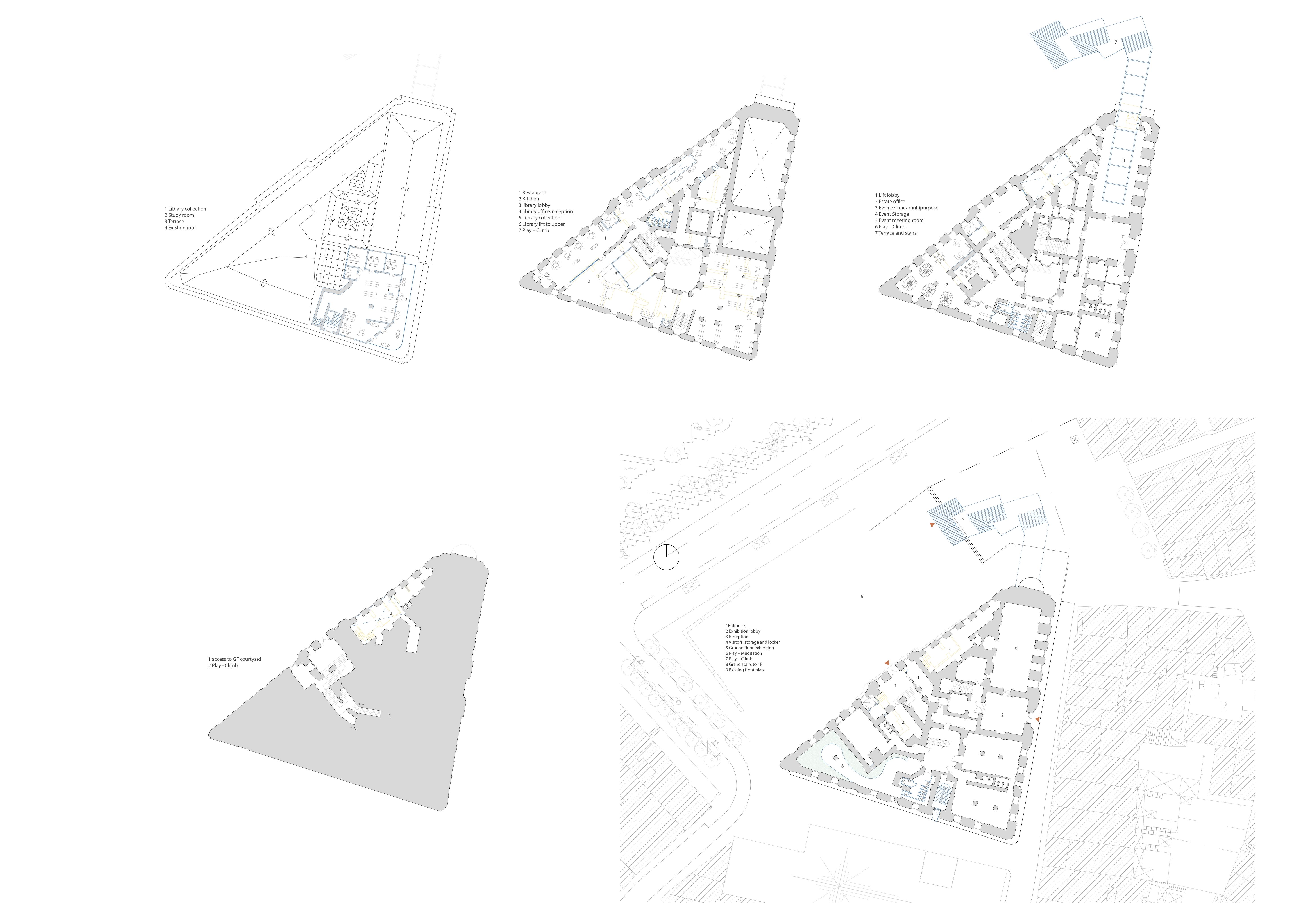 My Specialist Project is a ‘resource tool’ which could be used both by students and practitioners, but also the general public. The primary element is a visual, diagrammatic language, presented principally as a series of conceptual axonometric drawings, which represent key terms and strategies. The result is a visual-led series of booklets forming a ‘pocket’ guide which, alongside the use of simple and clearly defined language, is intended to make the central concepts of adaptive re-use more accessible.