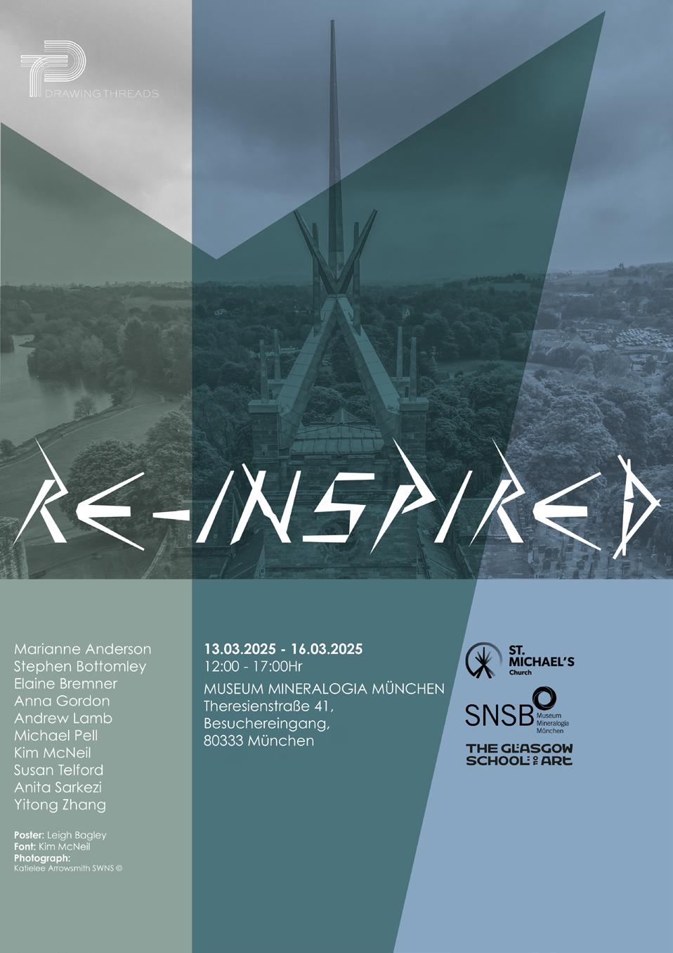 Re-inSpired is the Drawing Threads Clusters’ first group exhibition that features eleven of our staff and researchers’ work. Our members present designs from donated sheets of the 1960s anodised aluminium metal cladding removed from the sculptural spire of St Michael’s Church, Linlithgow in Scotland, during its renovation in 2024. The spire, known locally as the ‘Crown of Thorns’, was designed in 1964 by the British artist Geoffrey Clarke. The provenance of the site’s material, history, and heritage has offered rich and fertile territory to explore diverse ideas, including value, sustainability and sense of place.