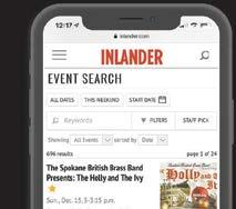 VALLEYFEST RIVER RUN This annual race starts and finishes at the Plante’s Ferry picnic shelter. Choose from a 5k or 10k loop. Sep. 20, 8 am-8 pm. $25. Plantes Ferry Sports Complex, 12308 E. Upriver Dr. valleyfest.org (509-922-3299)