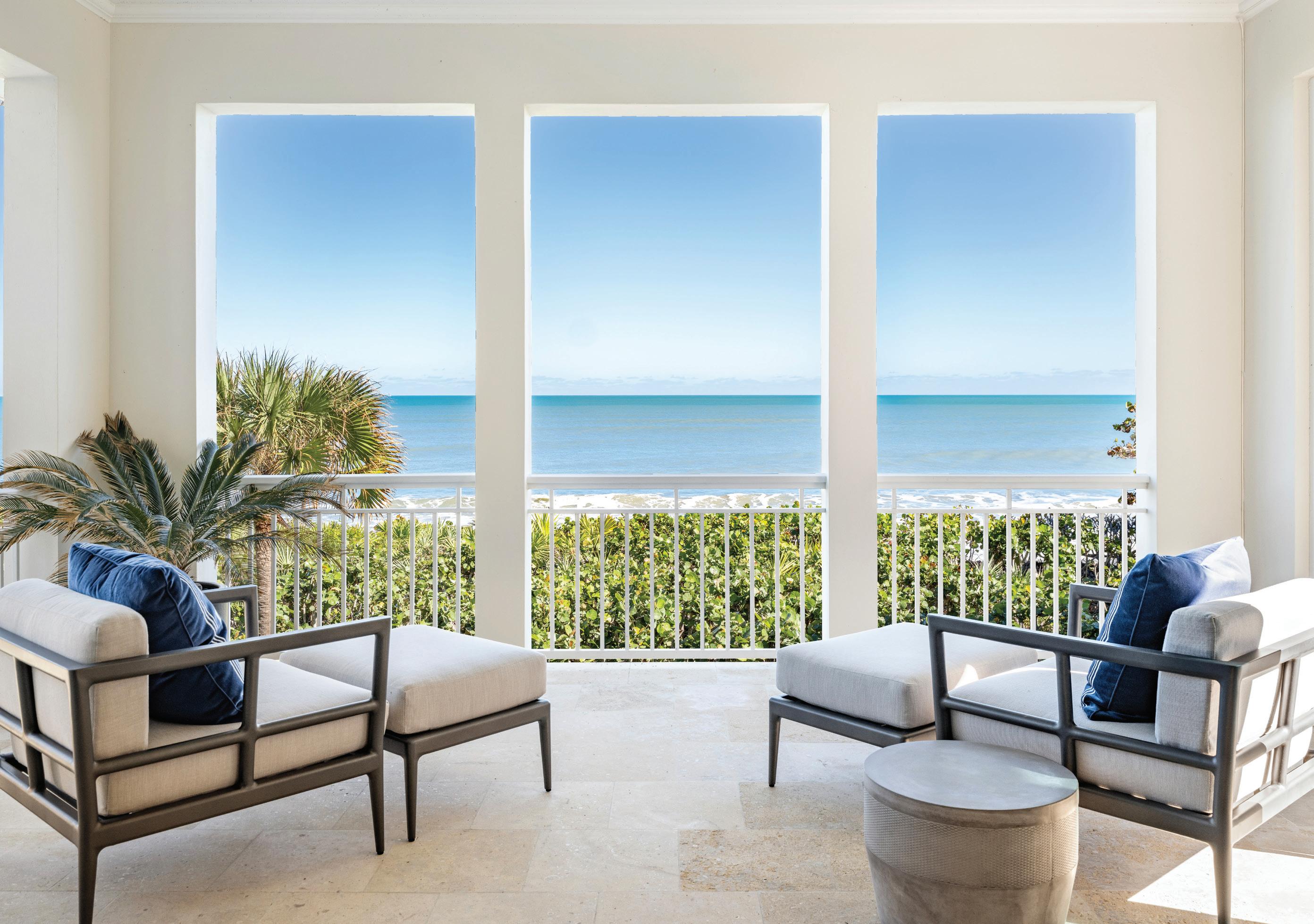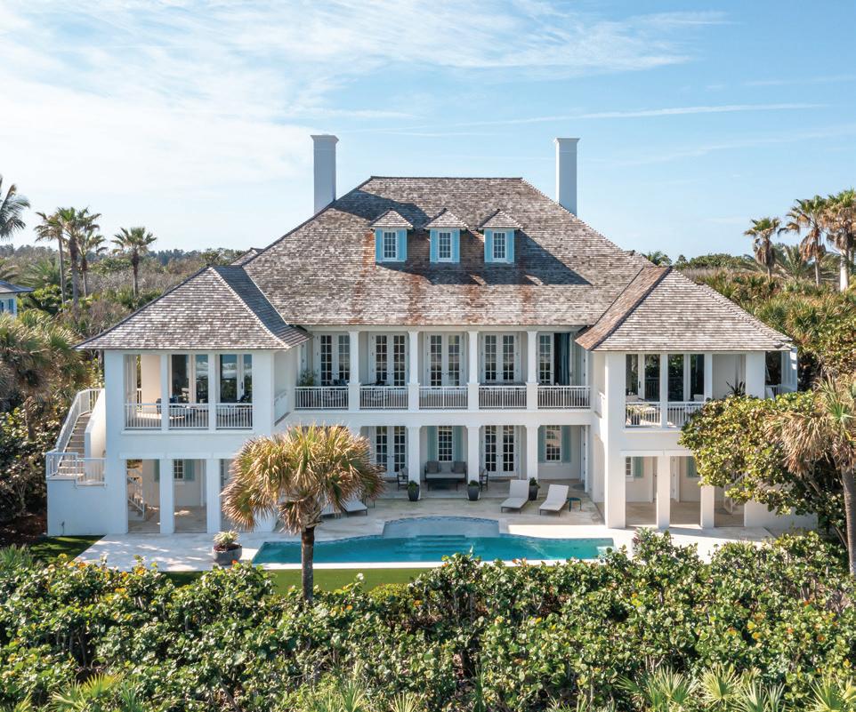 One of a limited number of Ocean Estates at Windsor, this property offers magnificent oceanfront living. A lushly landscaped front garden provides a gracious arrival experience and leads to a central entry hall and gallery. Dual curved staircases are designed to draw one upstairs to the oceanfront great room with voluminous ceilings, wide-open ocean vistas, and two fireplaces. The open-plan kitchen and family room open to two covered porches, one of which provides direct access to the pool terrace and dune crossover. The primary wing enjoys awe-inspiring panoramic ocean views from the bedroom with vaulted ceilings and has a private covered porch with direct access to the pool and beach. The five bedrooms in the main home all have direct access to the garden and poolside loggias.