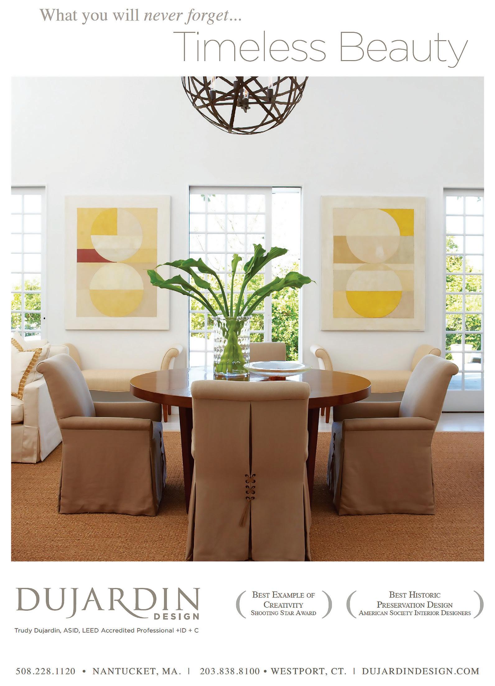 From the traditional to the more contemporary, from casual beach houses to chic city apartments, the firm’s clean, refined aesthetic integrates the finest antique furniture, original art, and natural finishes with timeless style. Dujardin Design Associates, Inc. creates interiors for some of the world’s most discerning clientele from offices in Westport, Connecticut, and Nantucket, Massachusetts.