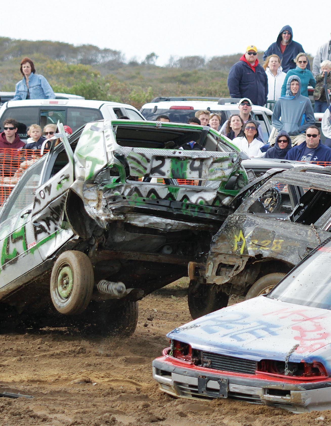 There was just something about the demo derby that immediately drew crowds. You could drive out to Great Point and watch the boats gracefully race in the distance, or you could head out to Tom Nevers and get caught up in the surround-sound feeling that is a small demo derby.