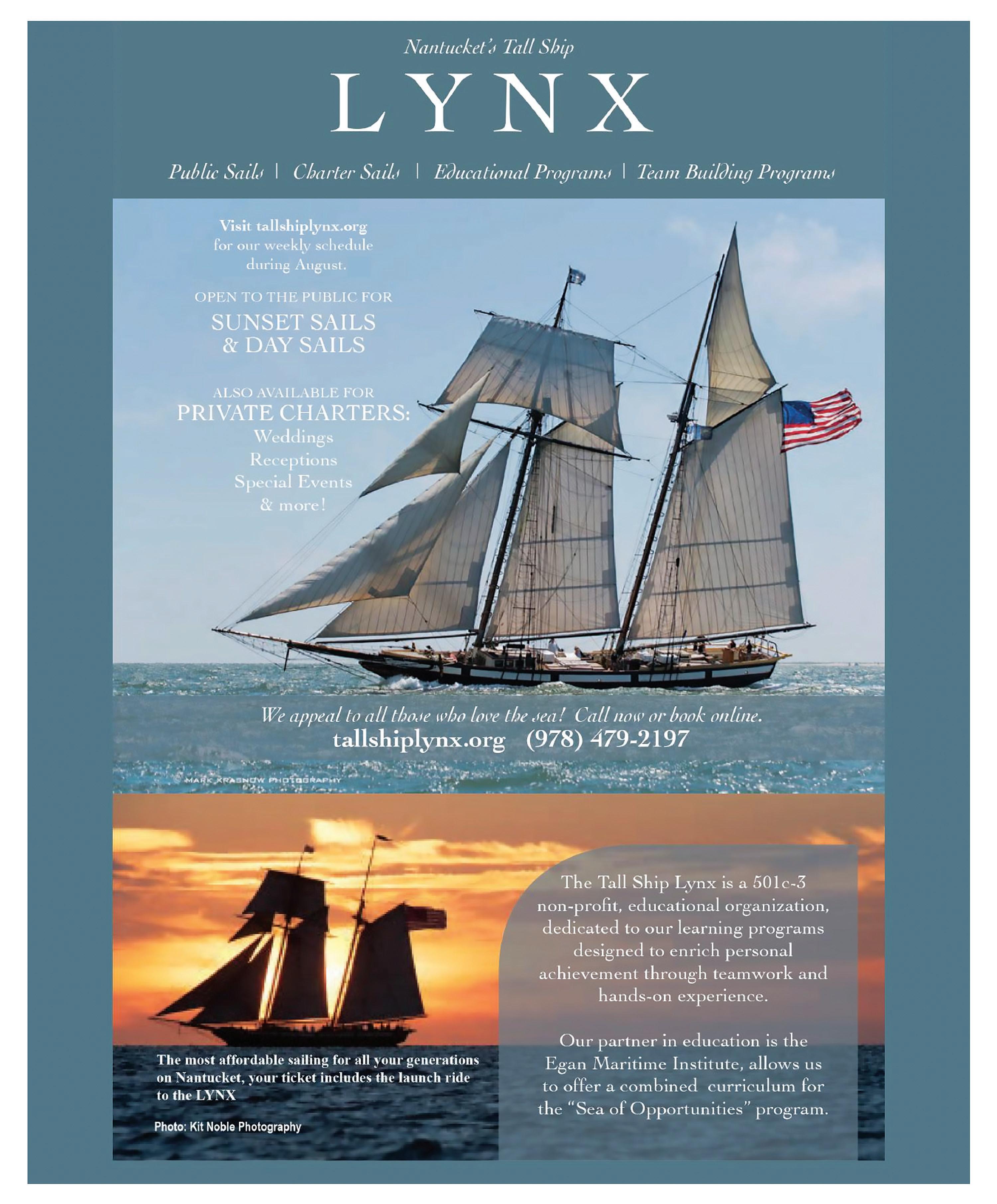 Contact Us: Nantucket Today, P.O. Box 1198, Nantucket, MA 02554. Phone 508 228-0001. Fax 508 325-5089. Advertising and subscription rates online at www.nantucketmag.com