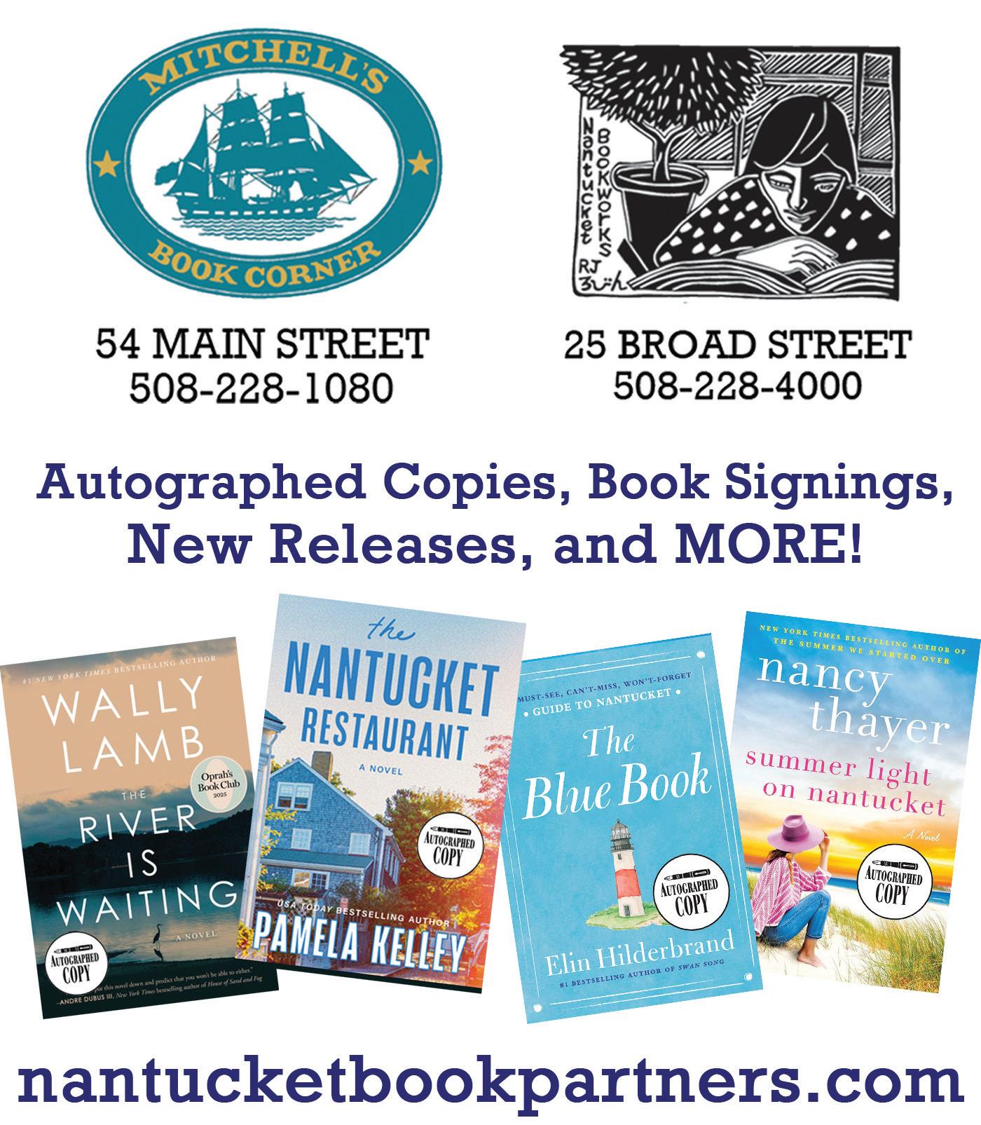 10:30 a.m.-noon, Mitchell’s Book Corner, 54 Main St. Best-selling Nantucket author Nancy Thayer will sign copies of her latest book, “Summer Light on Nantucket.”