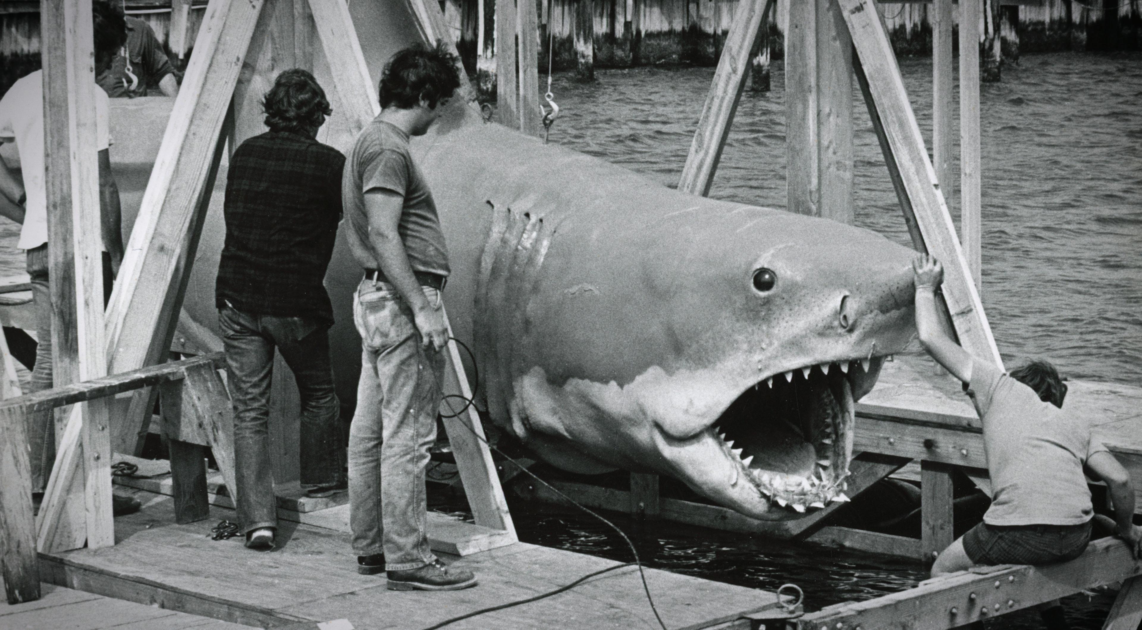 A film crew examines “Bruce,” the mechanical shark on the set of “Jaws.” The documentary “Jaws @ 50” is the centerpiece film of the 2025 Nantucket Film Festival.