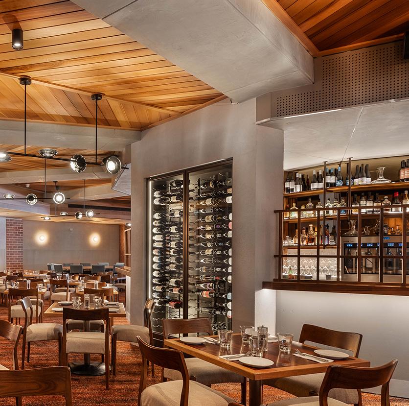 The first floor houses a modern dining space, showcasing Mediterranean cuisine with an accessible dining format.